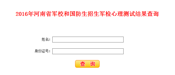 2016年河南省军校和国防生招生军检心里测试结果查询