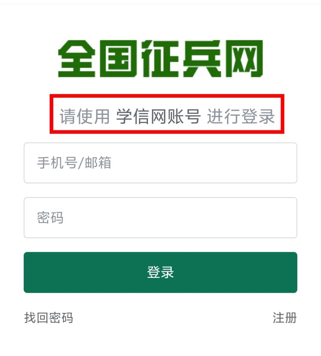 已知自己学信网账号和密码的青年可直接登录,继续完成兵役登记;未注册过学信网账号的青年,需先完成学信网账号注册,才能登录全国征兵网。