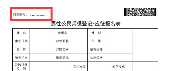 登录“全国征兵网”→点击“往年报名信息”→点击“打印报表”→下载《男性公民兵役登记/应征报名表》,网登编号显示在表格的左上方。