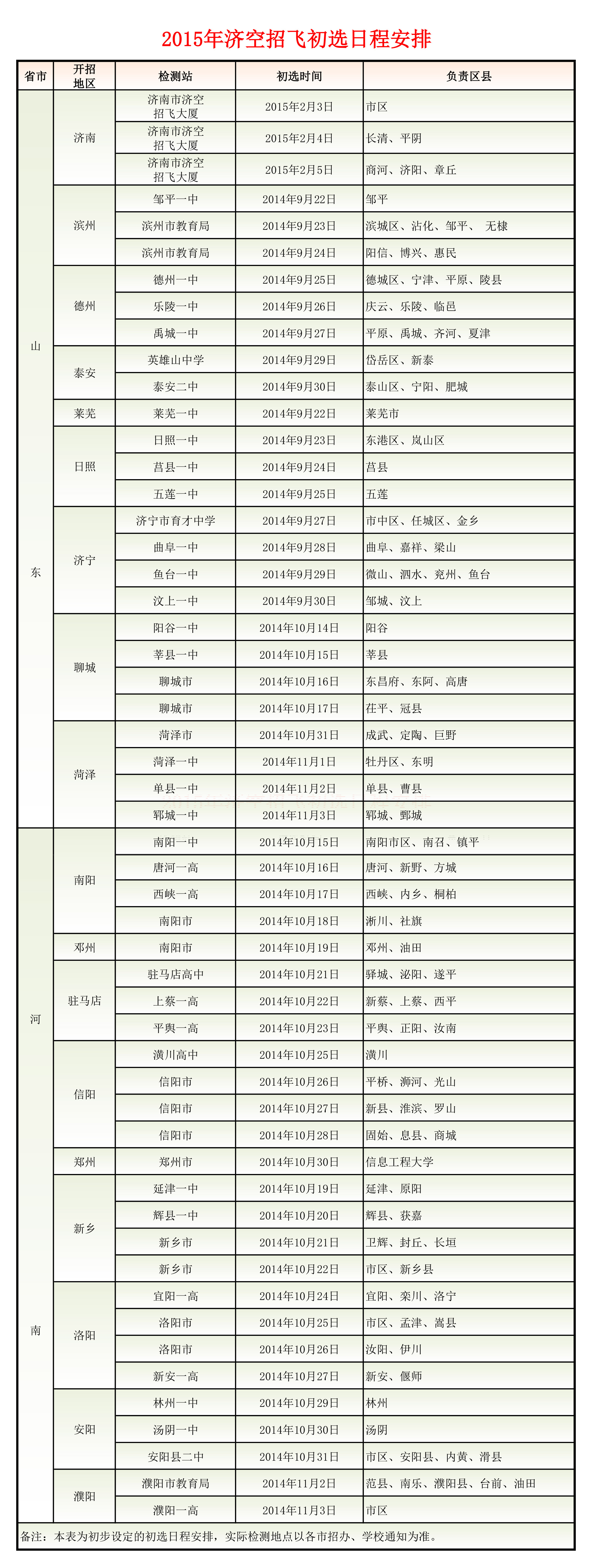 2015年济空招飞初选日程安排