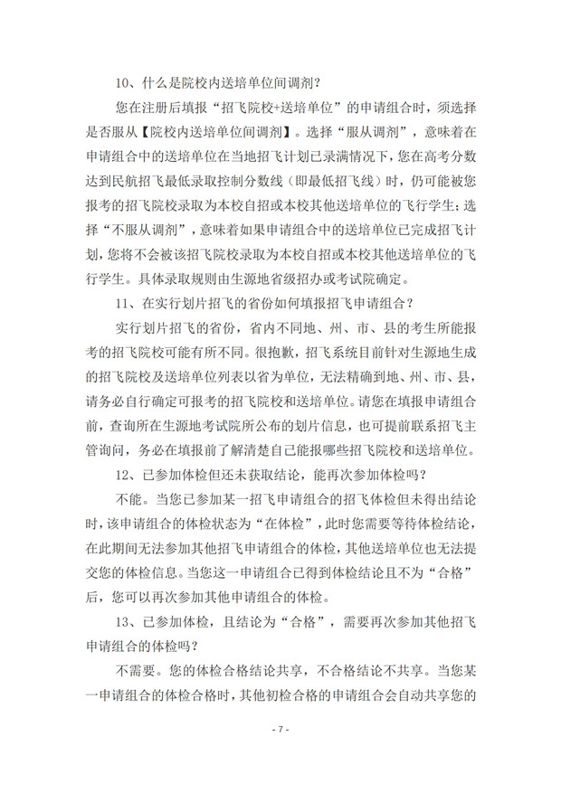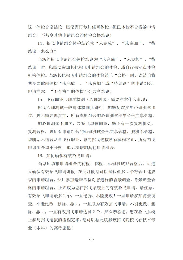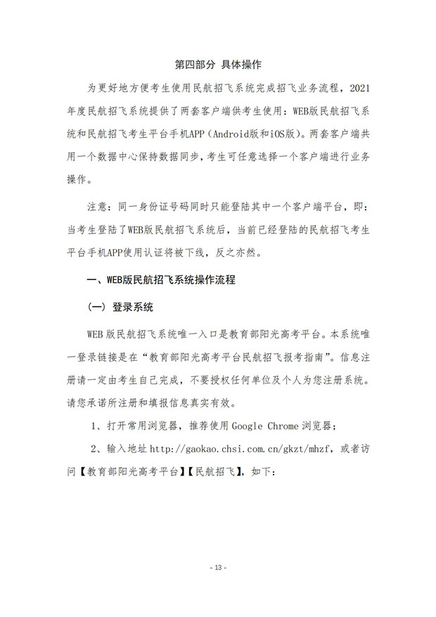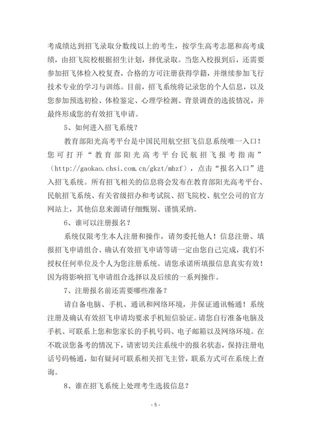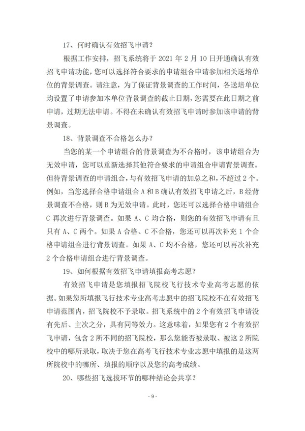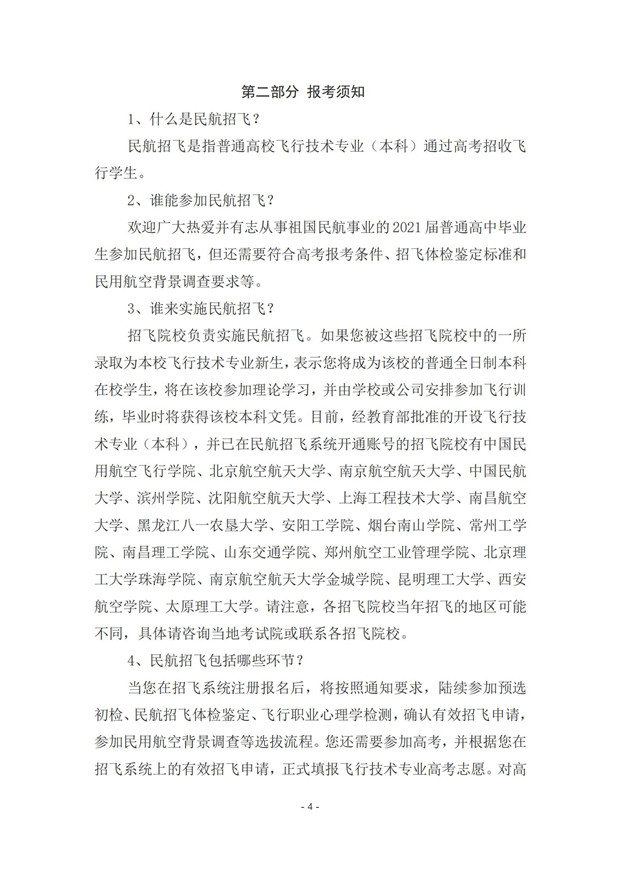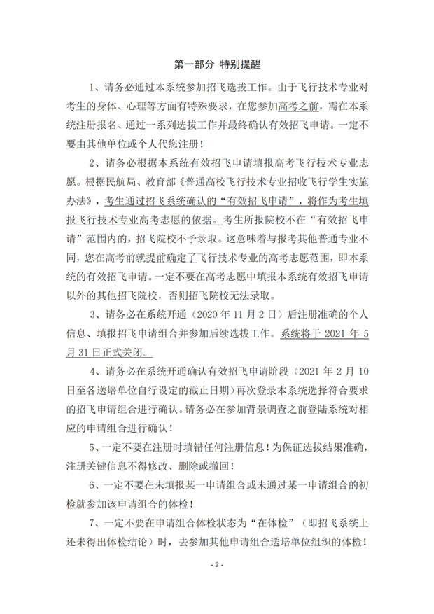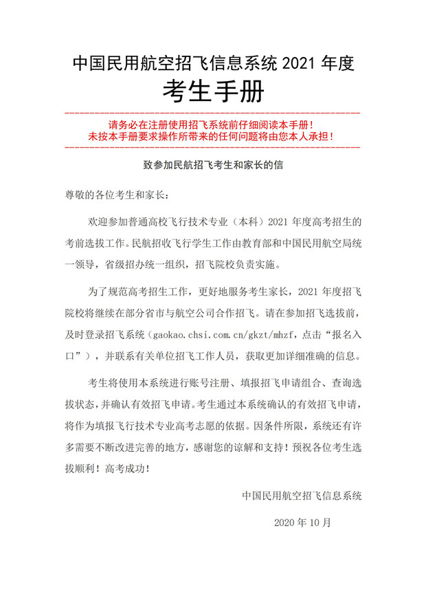 中国民用航空招飞信息系统2021年度考生手册