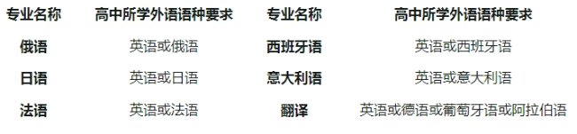 (二)高中所学外语语种为非通用语语种(俄语、日语、法语、西班牙语、意大利语、德语、葡萄牙语、阿拉伯语)的外国语言文学类专业保送生入校后,不允许调整专业。
