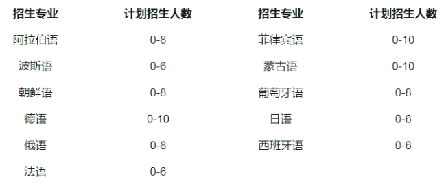 考生可填报五个专业志愿。德语、法语、西班牙语、俄语、日语、葡萄牙语专业只招收第一志愿考生,其它专业不限。