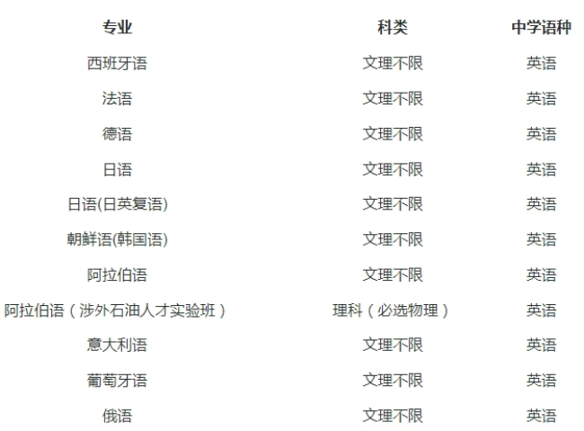 高中阶段均在教育部批准的具有推荐保送生资格的外国语中学就读、具有当年保送生资格、德智体美劳全面发展的应届高中毕业生。