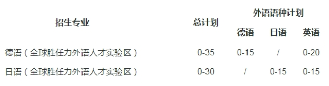 高中所学外语语种为英语语种的考生可以填报一至两个专业志愿,并选择是否服从调剂;高中所学外语语种为德语语种的考生仅能填报德语专业;高中所学外语语种为日语语种的考生仅能填报日语专业。未按要求填报的专业志愿无效。
