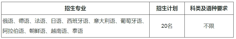 凡符合规定具有保送资格的学生,经所在中学推荐,可报名参加我校组织的保送生专项测试,成绩合格并通过教育部阳光高考信息平台公示和所在省级招考主管部门审核者,可免于参加全国普通高等学校招生统一考试,进入我校外国语言文学类专业(非英语)学习。