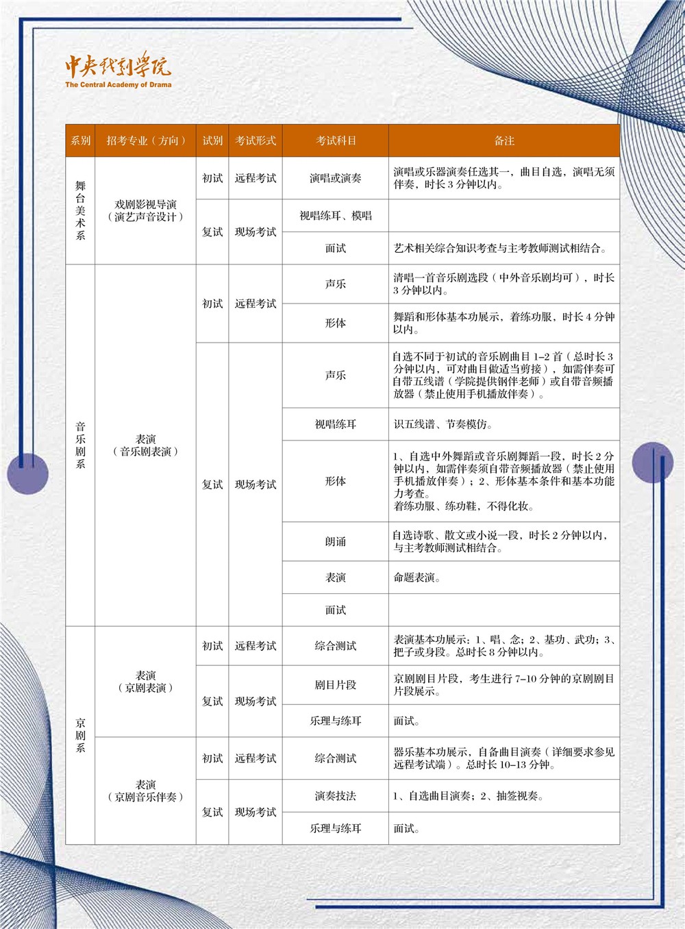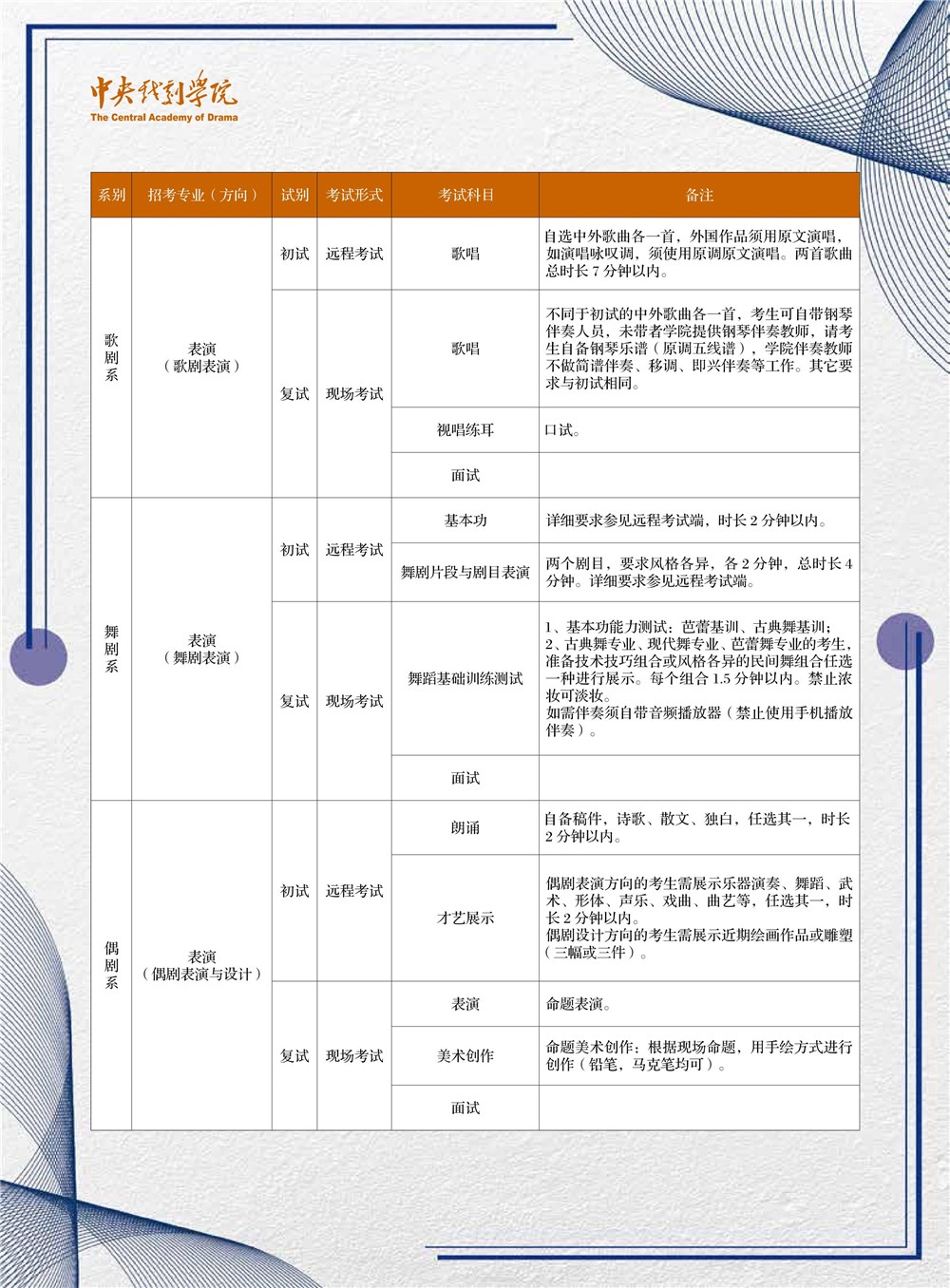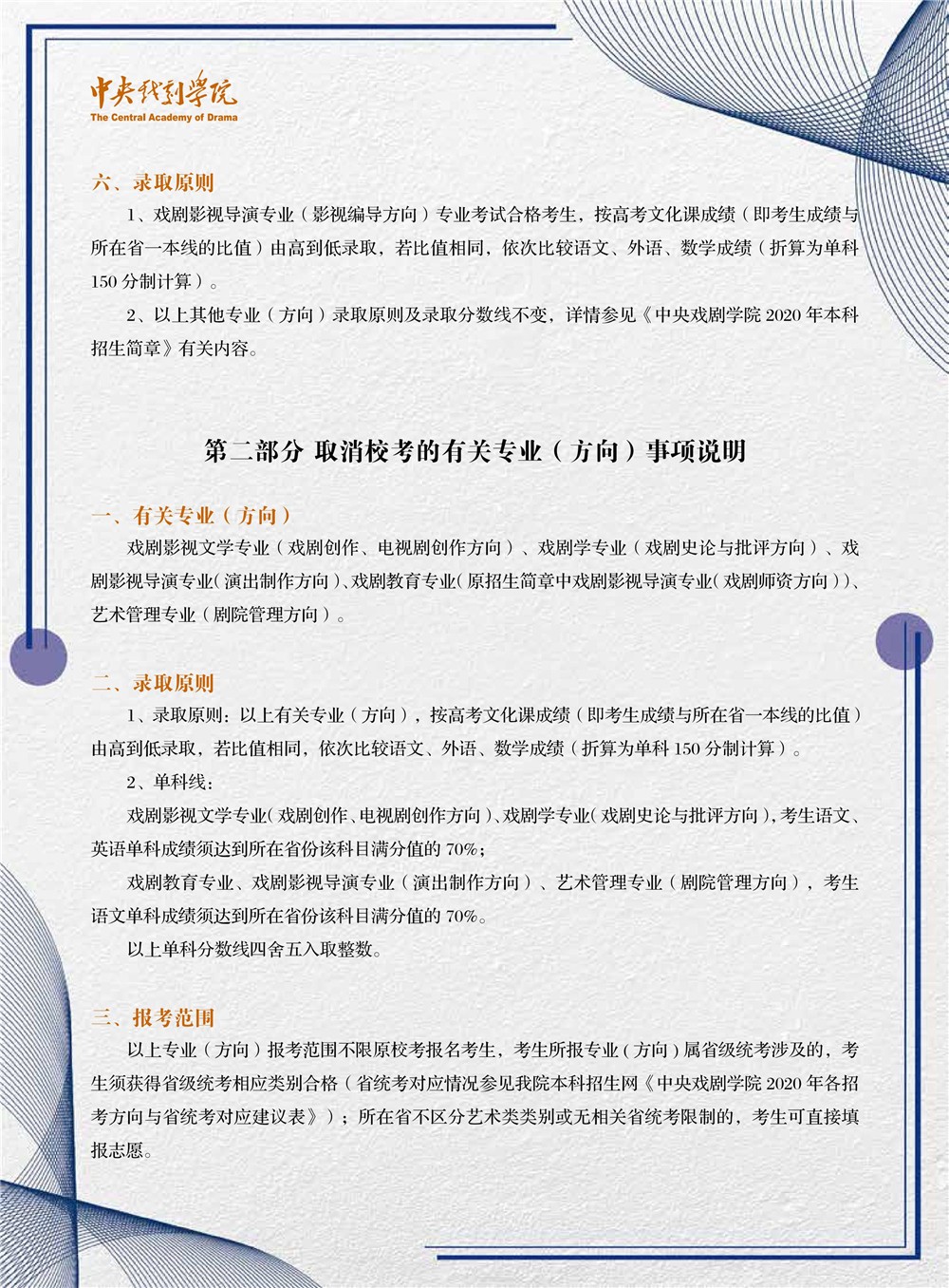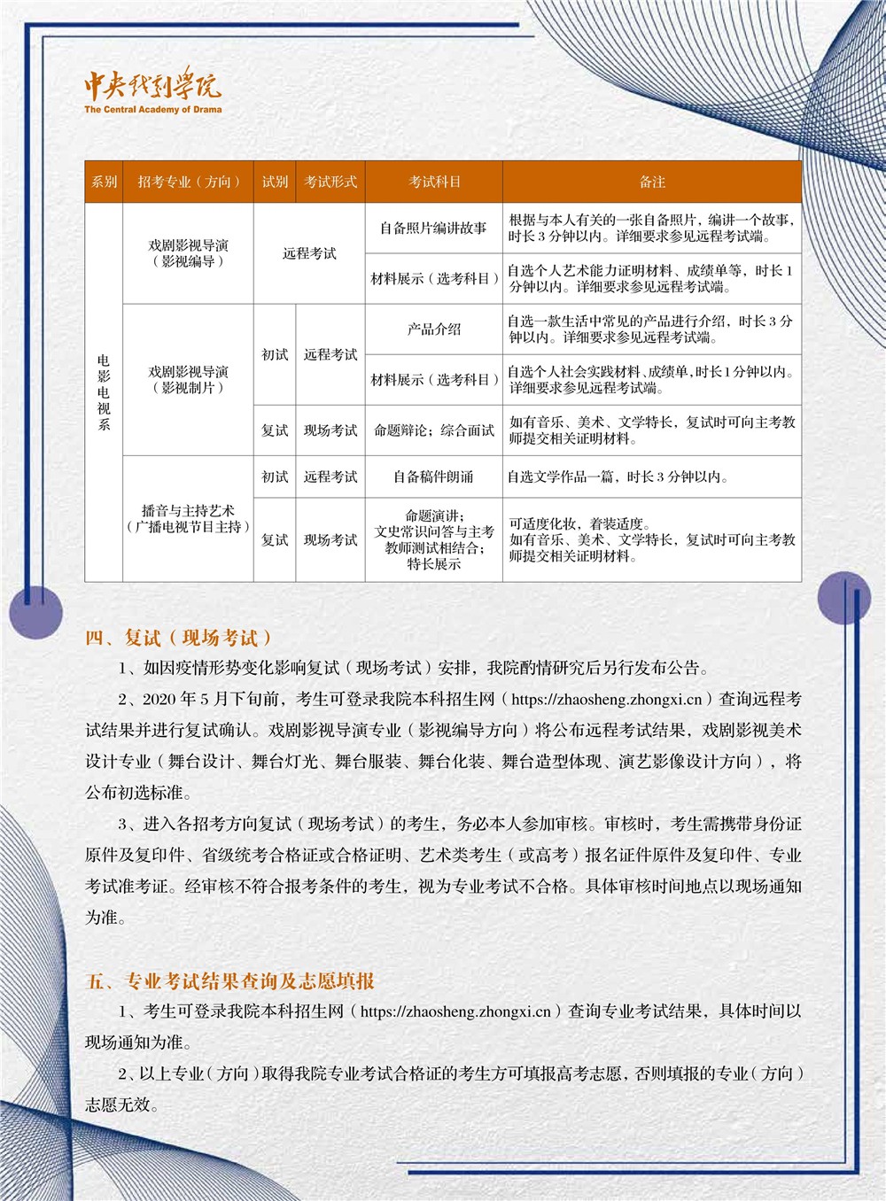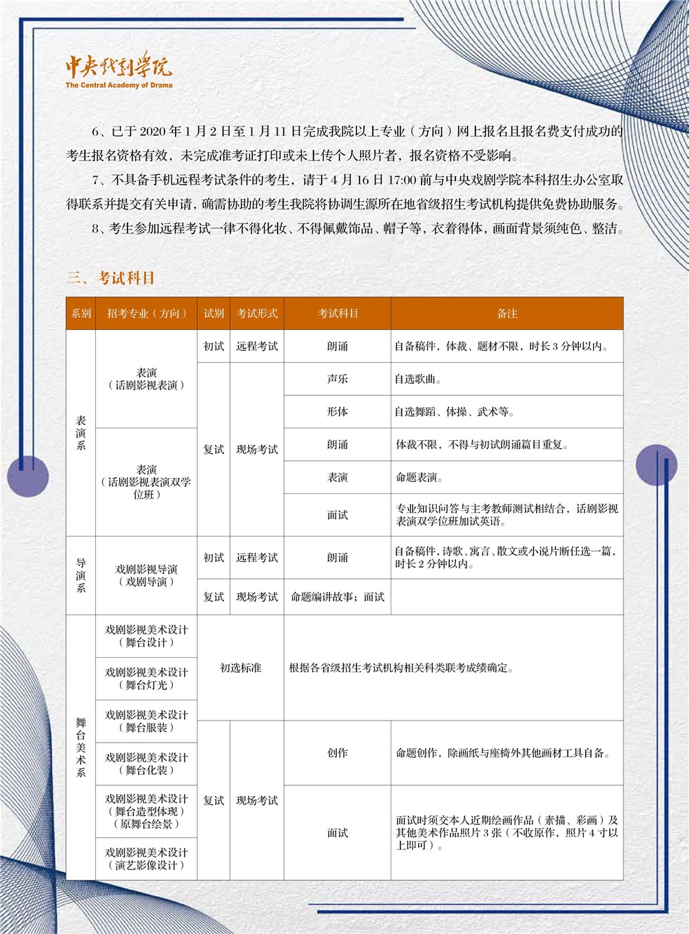 中央戏剧学院2020年本科招生专业考试调整方案