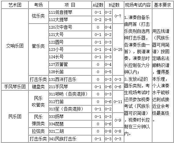 ①器乐类:按照所报项目考试内容要求演奏一首曲目。不得使用背景伴奏音乐否则判为初审不合格。