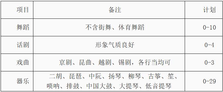 说明:以上所列为计划招生项目,未列出的项目本年度不招生,考生不得兼报。按照择优录取、宁缺毋滥的原则,学校可依据测试生源情况调整各项目计划数。