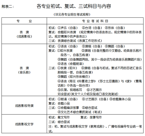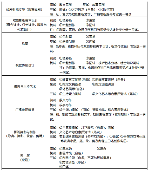 2、戏剧影视文学、戏剧影视文学(教育戏剧)、广播电视编导三个专业初、复试统一考试,三试分别面试。考生可以兼报。