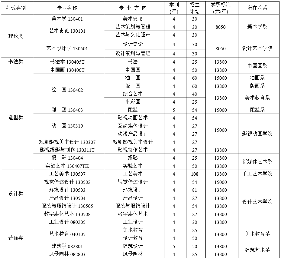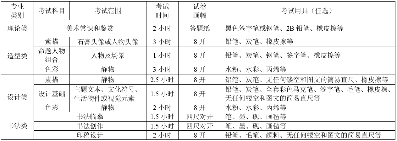 (二)造型类、设计类、理论类、书法类专业报考要求