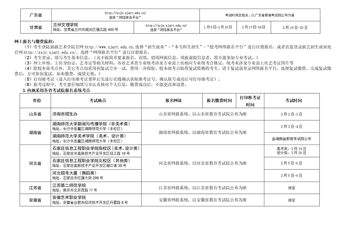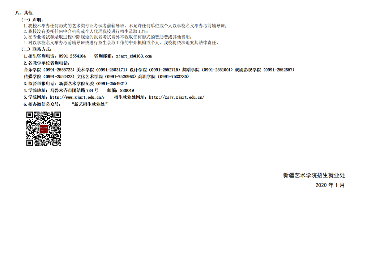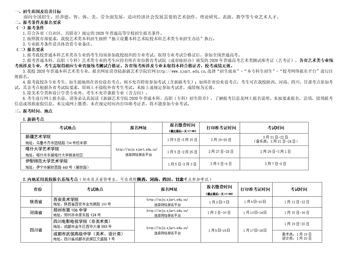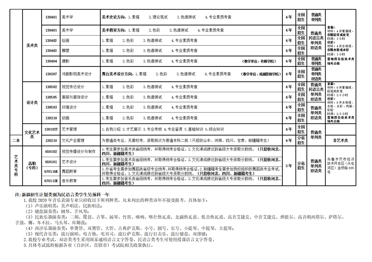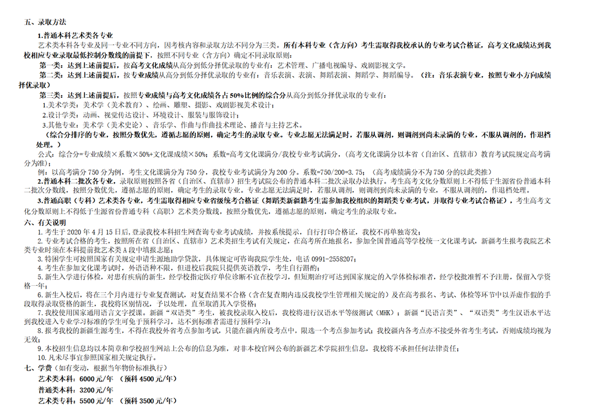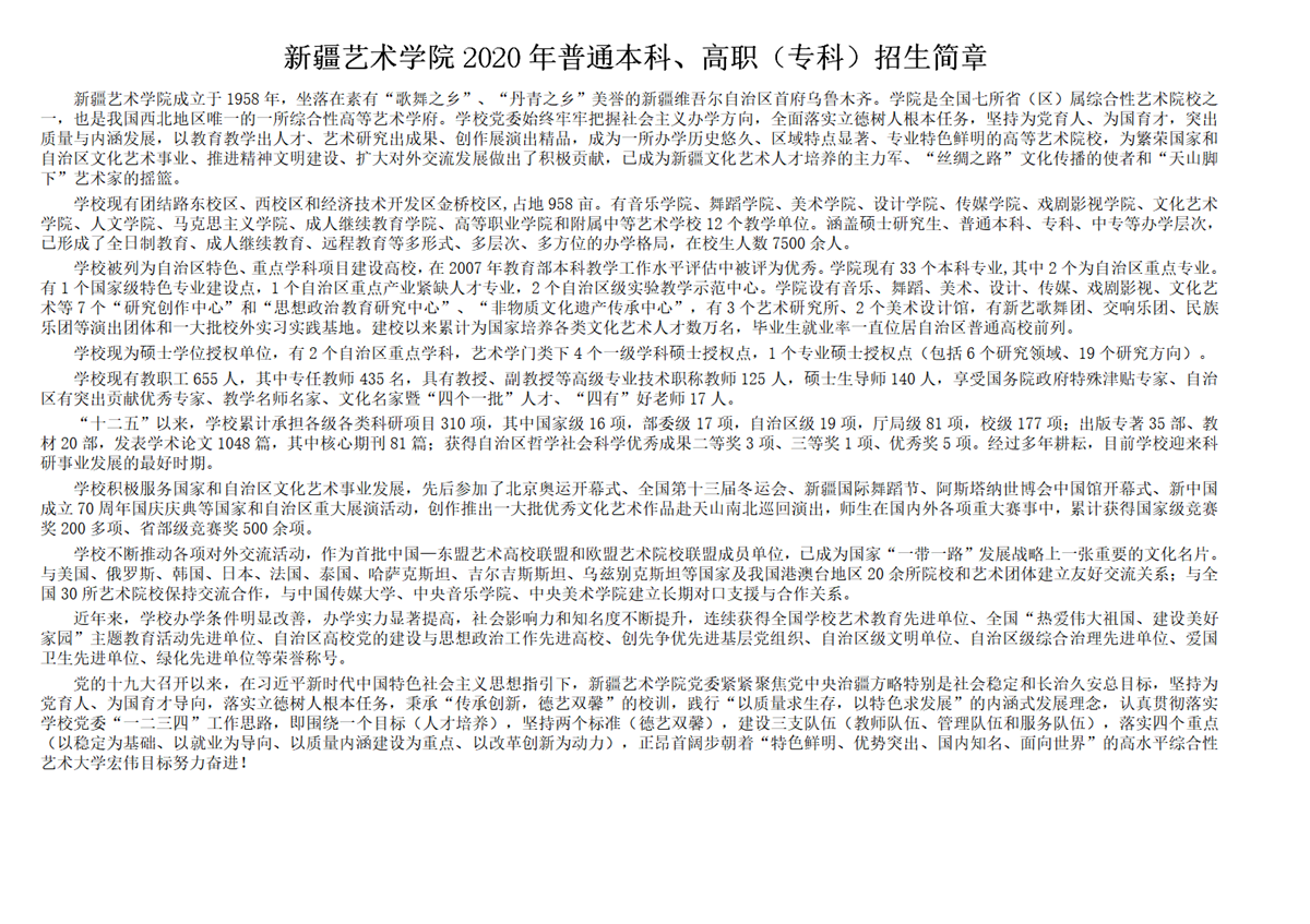 新疆艺术学院2020年普通本科、高职(专科)招生简章