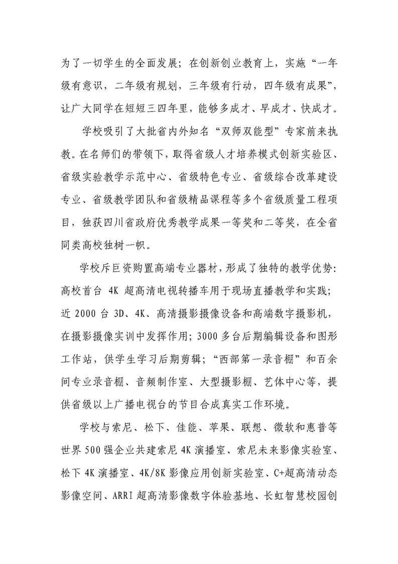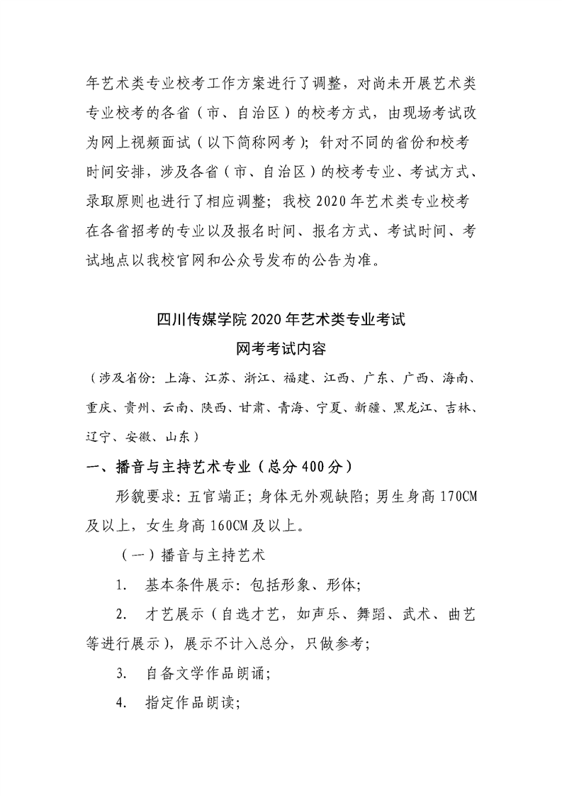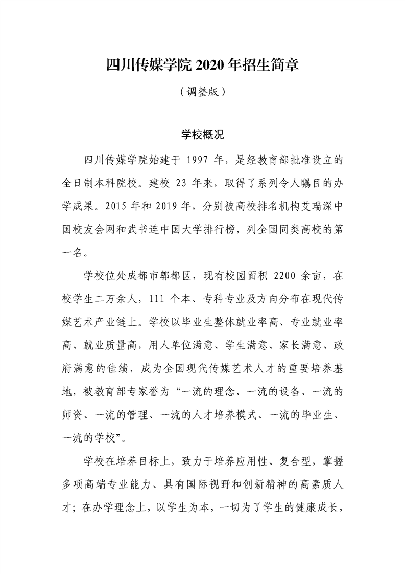 四川传媒学院2020年招生简章(调整版)