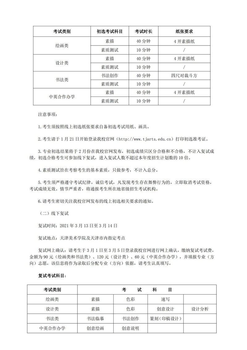 天津美术学院2021年本科招生简章