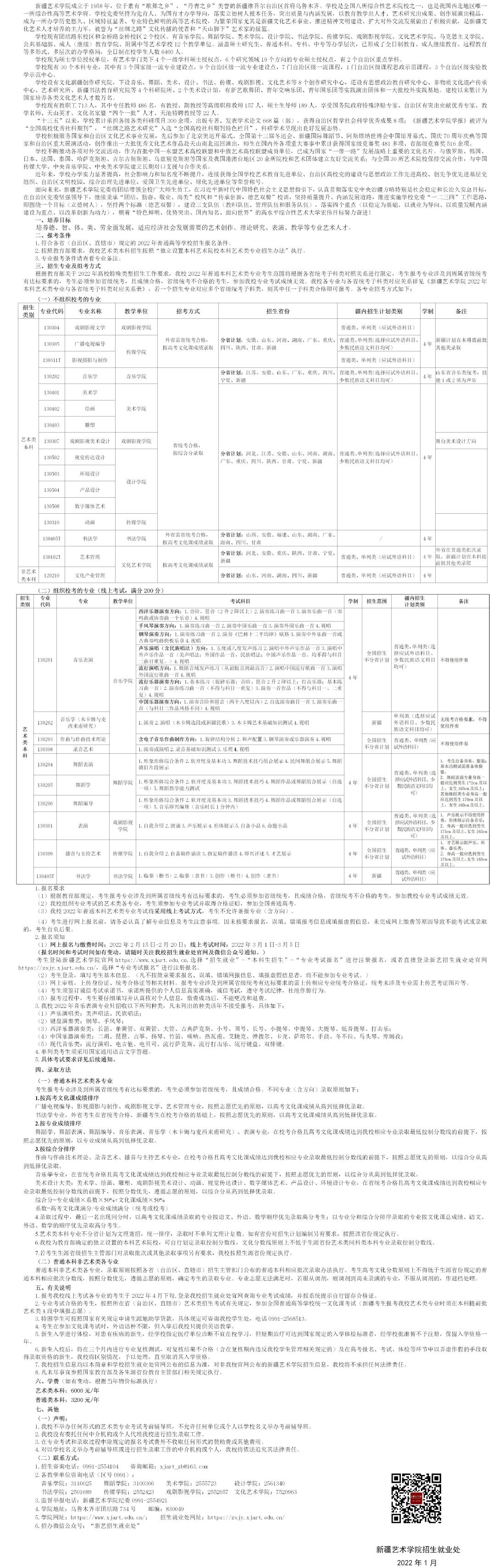 新疆艺术学院2022年普通本科招生简章