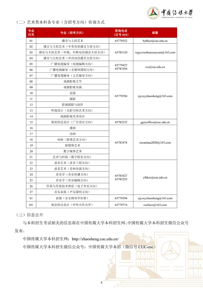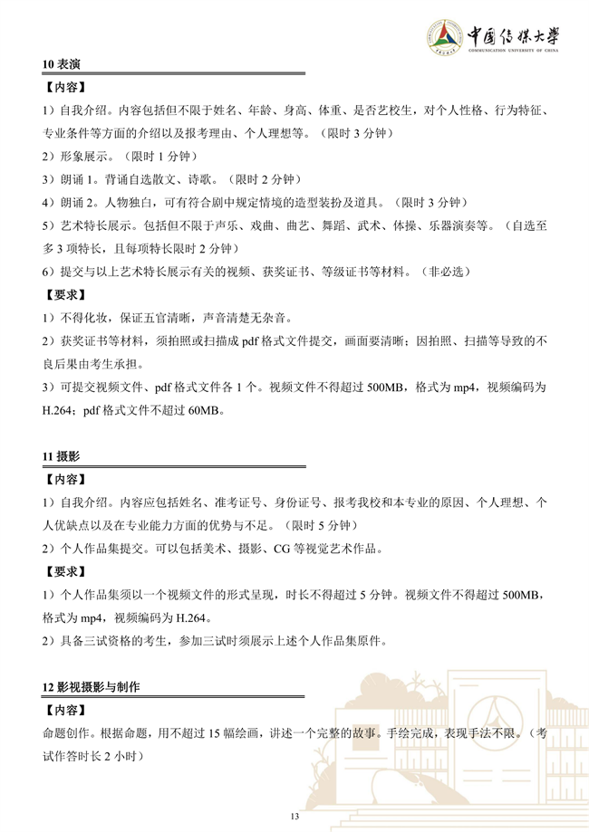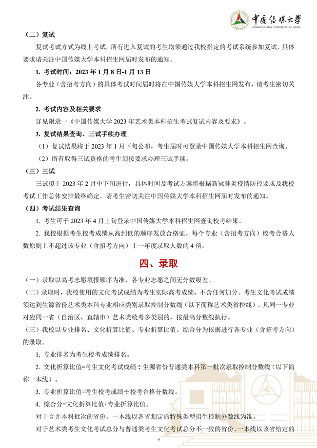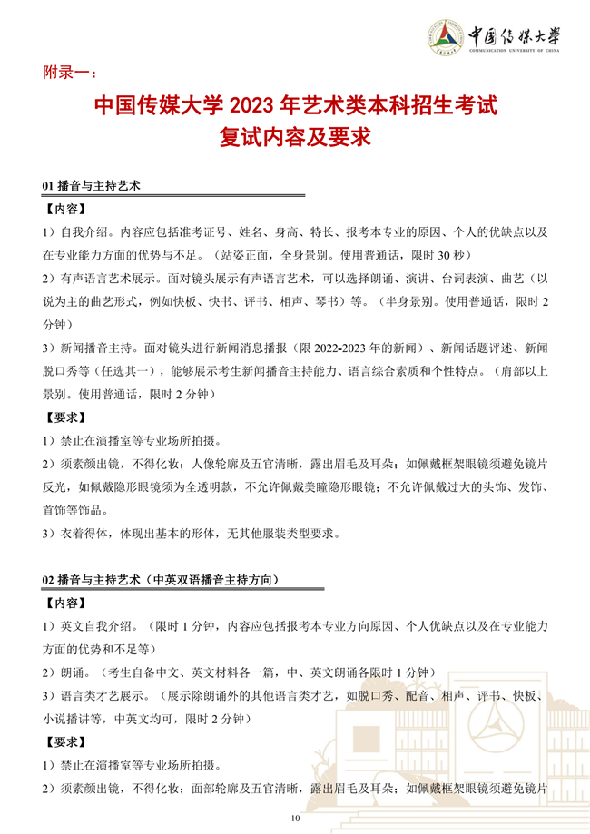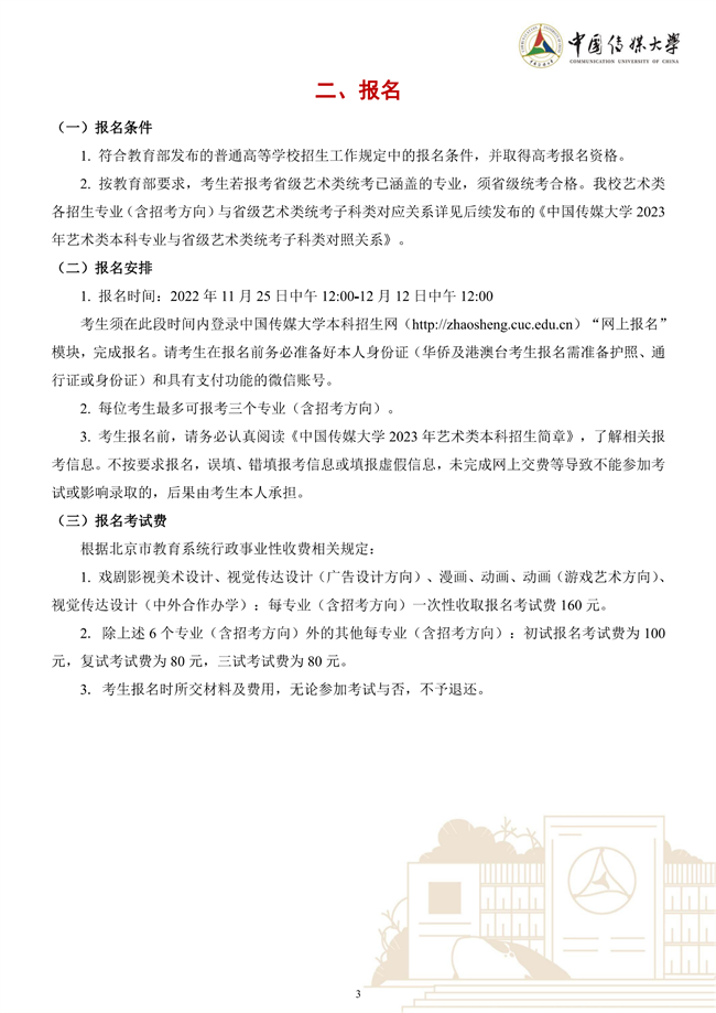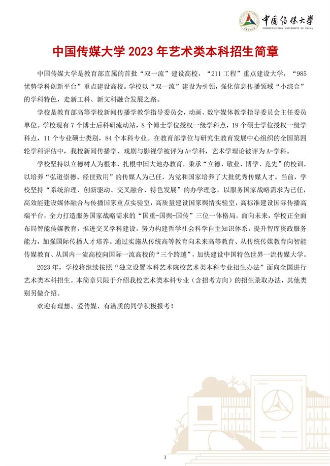 中国传媒大学2023年艺术类本科招生简章