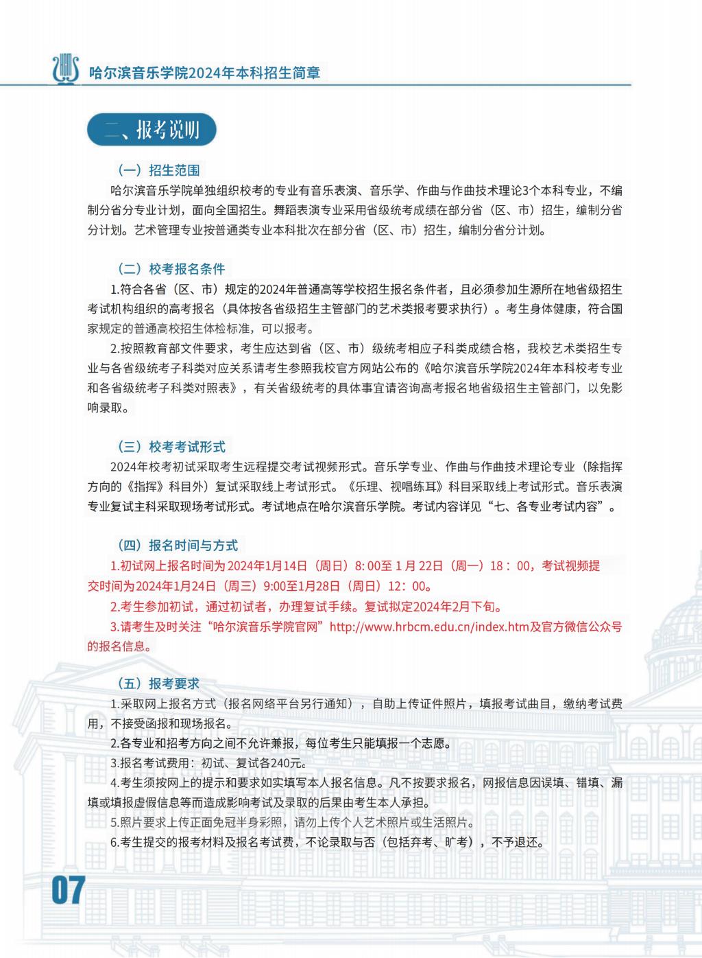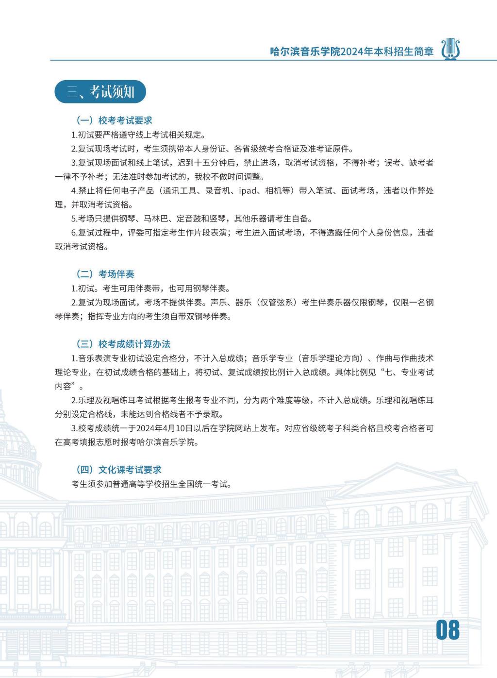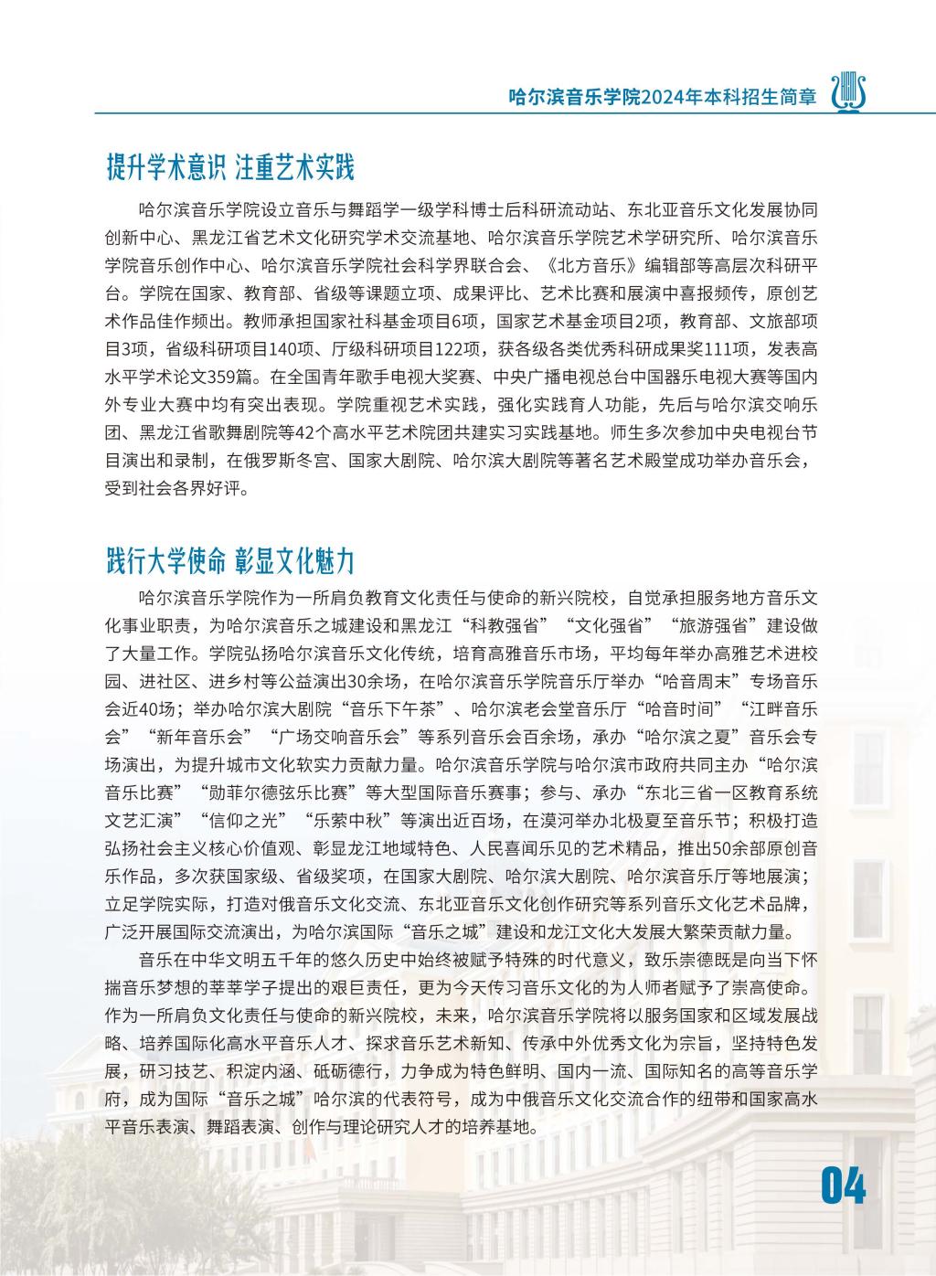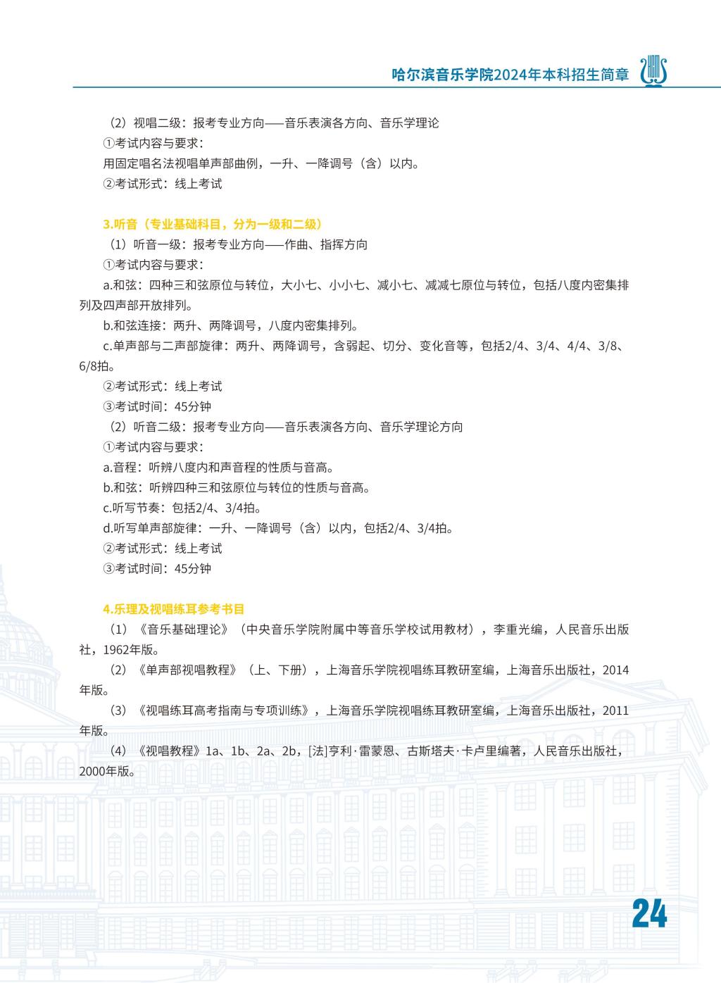 哈尔滨音乐学院2024年本科招生简章