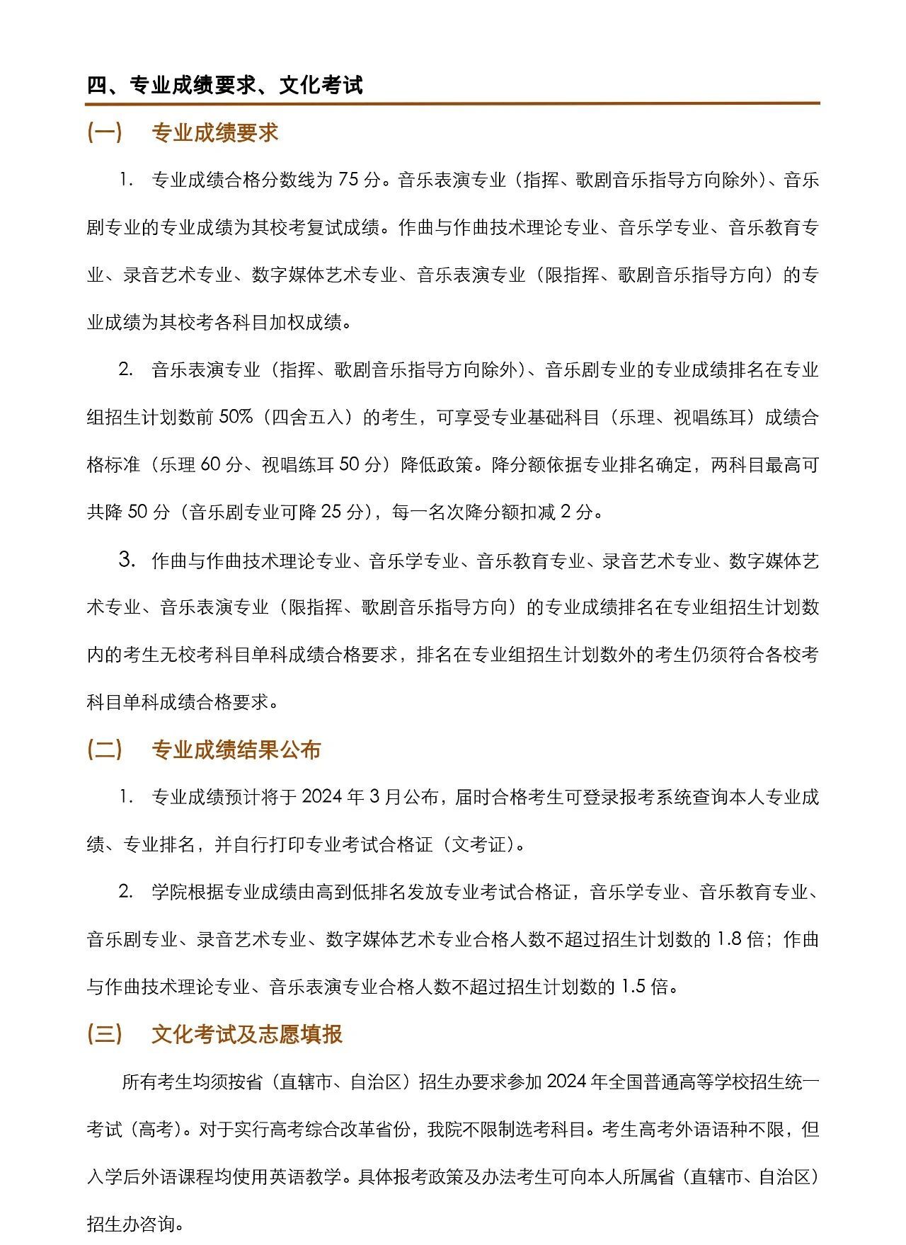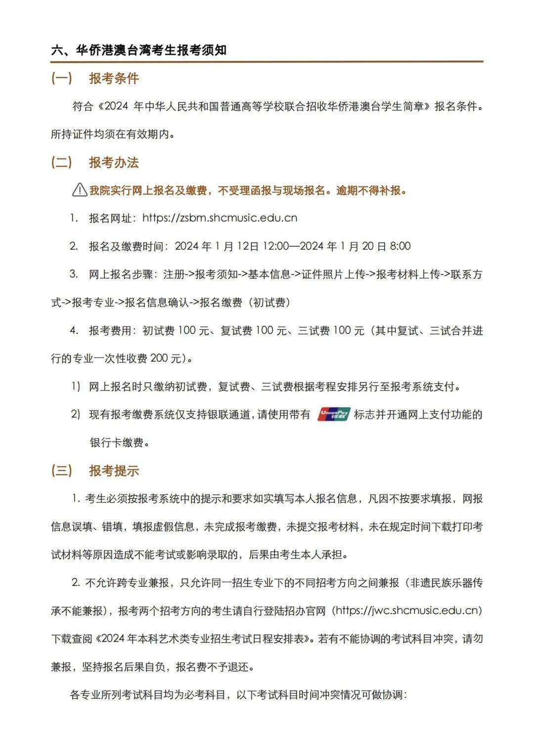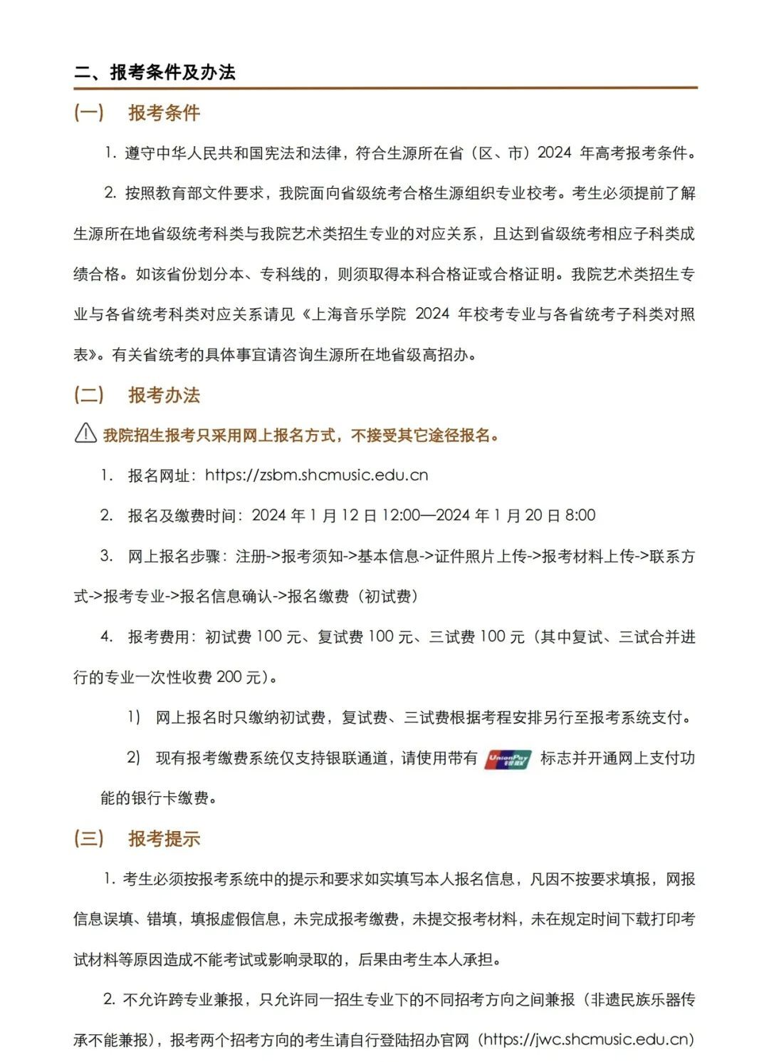 上海音乐学院2024年本科艺术类校考专业招生简章