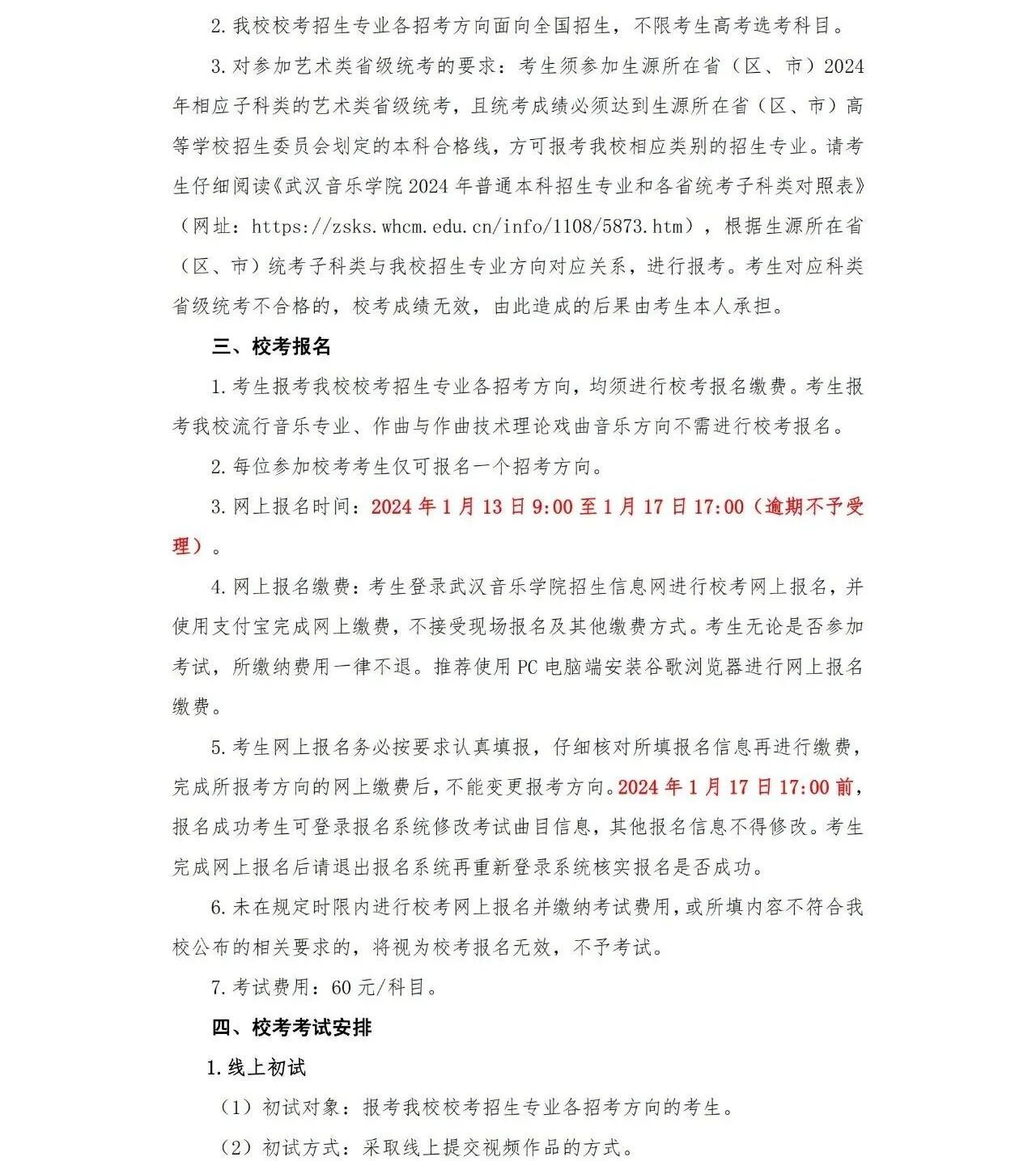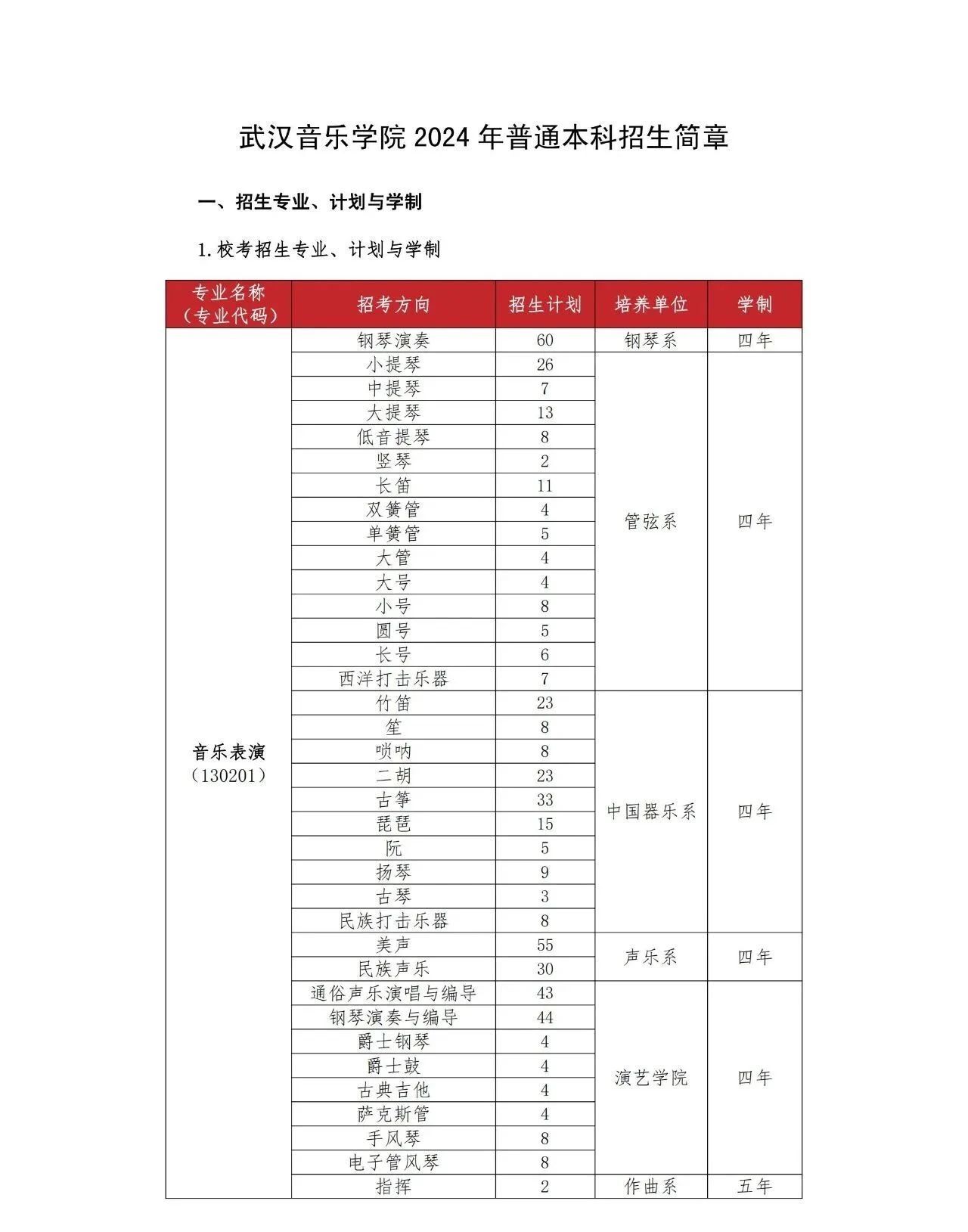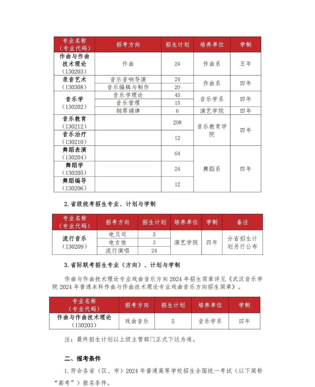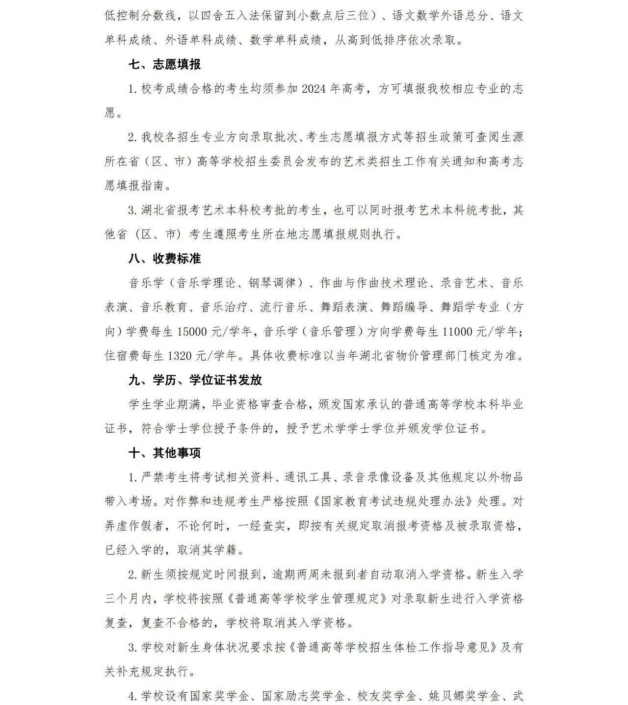 武汉音乐学院2024年普通本科招生简章