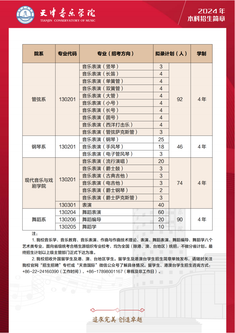 天津音乐学院2024年本科招生简章