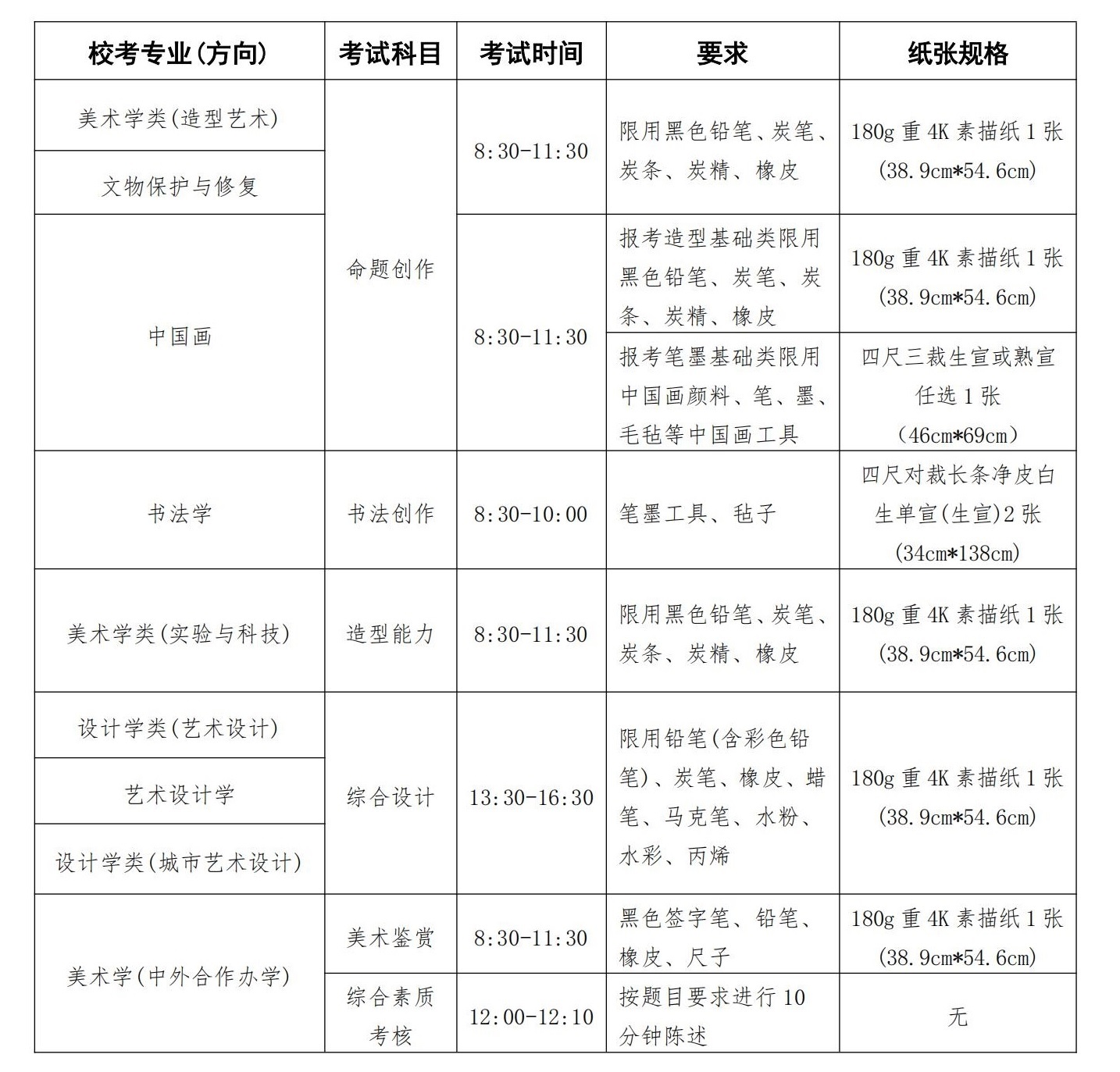 所有专业考试禁止使用油画颜料,禁止使用各种图文数字模板模具;现场考试禁止使用需外接电源的绘画辅助工具及设备。