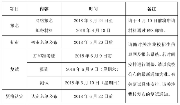 (二)复试:通过初审的考生请于2018年6月10日到我校参加复试。