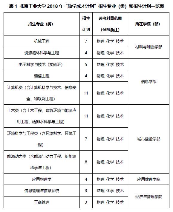 北京工业大学2018年“励学成才计划”招生简章