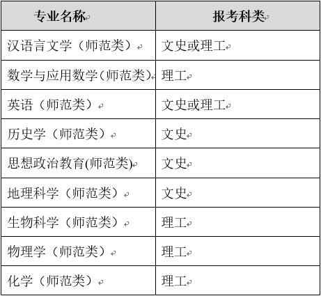 汉语言文学、英语、地理科学(不限);数学与应用数学(物理、生物);历史学(历史);思想政治教育(政治);生物科学(物理、化学、生物);物理学(物理、化学、技术);化学(物理、化学、生物)。