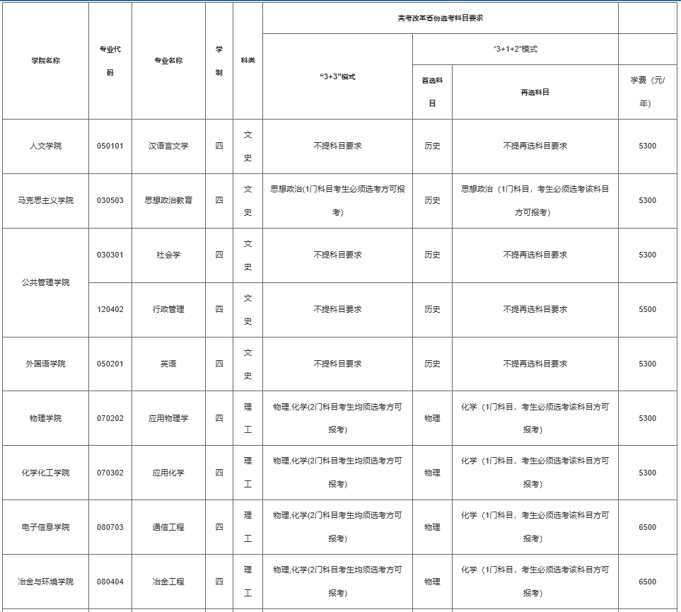 (2)我校高校招生专项计划招生专业目录及高考改革省份选考科目要求见附件。