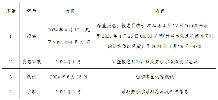 2024年高校专项计划招生工作程序见下表: