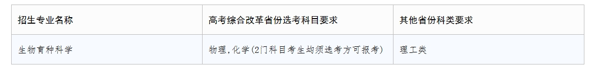 我校2024年强基计划招生专业为生物育种科学,招生专业选考科目或科类要求见下表。