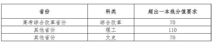 1.考生高考成绩(不含任何政策加分,下同)须达到所在省(自治区、直辖市)第一批本科录取控制分数线(对于合并本科批次的省份,按相关省级教育行政部门或招生考试机构确定的特殊类型相应最低录取控制分数线执行)。