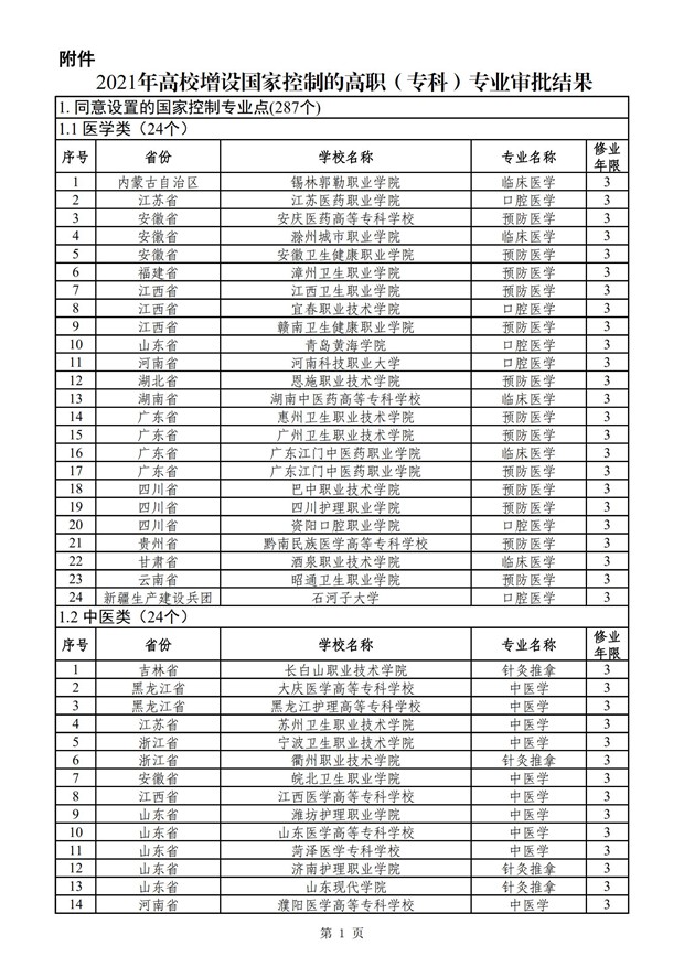 根据《普通高等学校高等职业教育(专科)专业设置管理办法》(教职成〔2015〕10号),我部组织对2021年申请增设国家控制的高职(专科)专业点进行了评议。