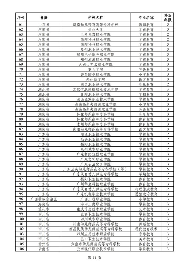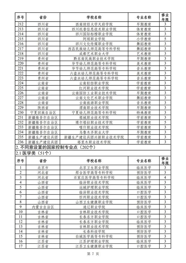控制的高职(专科)专业审批结果的通知