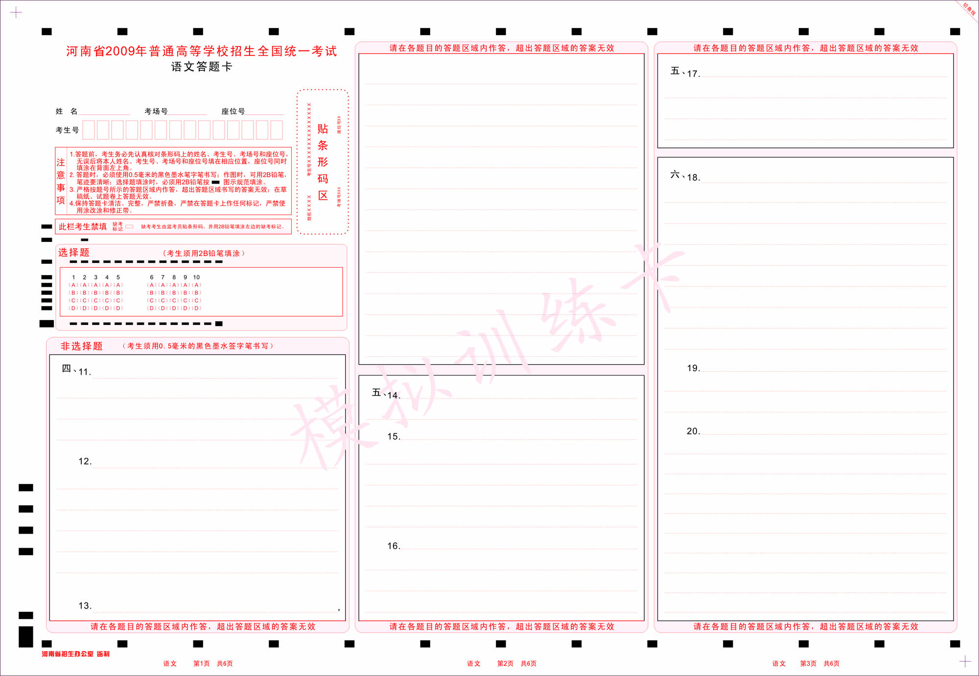 答题卡设计为A3纸一张(英语为A4纸型),使用120g优质纸,双面印刷。