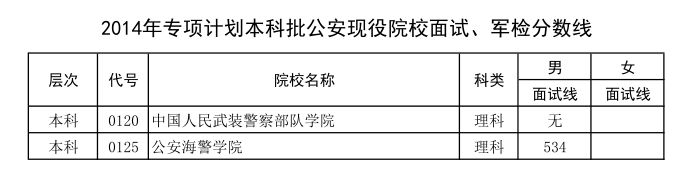 2014年河南省普通高招公安及公安现役院校面试分数线
