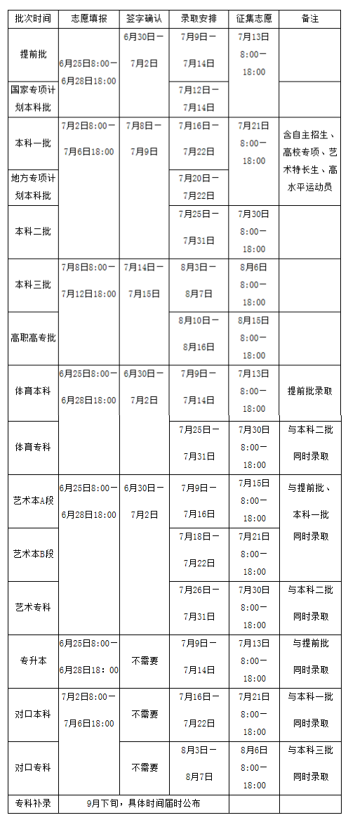 面试和复检今年仍实行全省集中分批进行。6月29日,省招办将通过网站和媒体,公布军检线和分批安排情况,请填报此类志愿的考生主动查看。