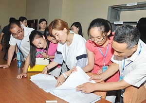 图三:考生及家长代表听取信息管理组工作介绍
