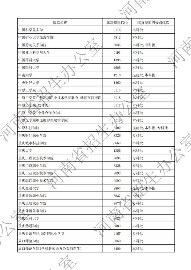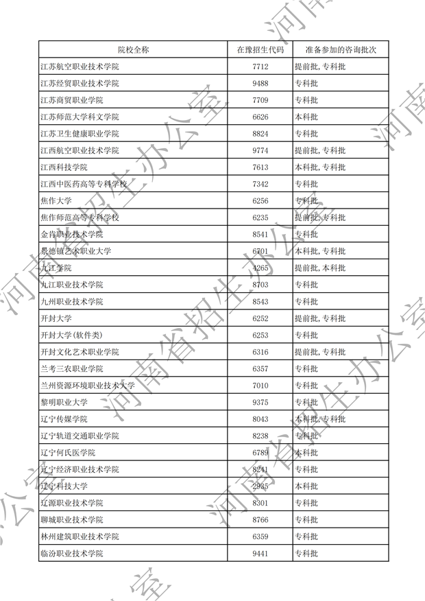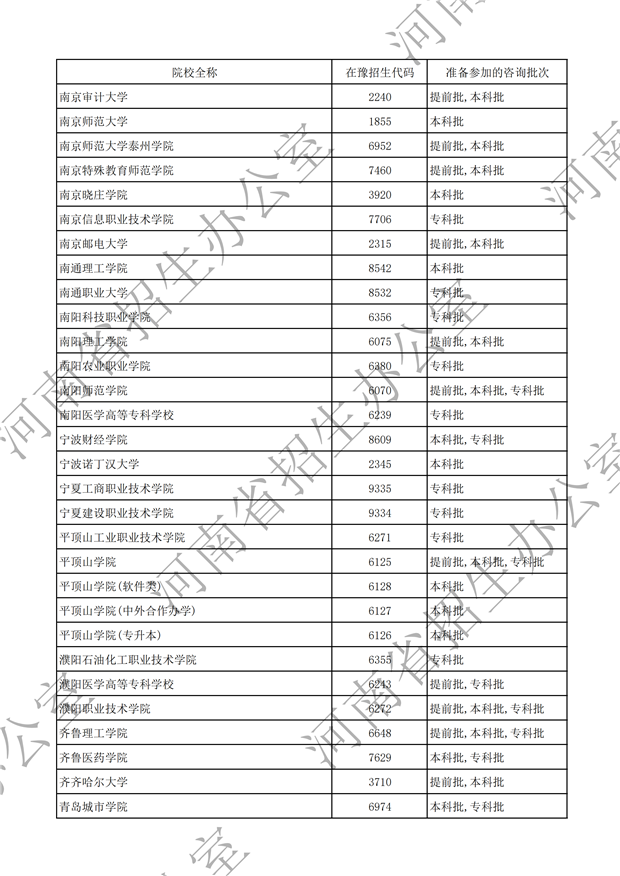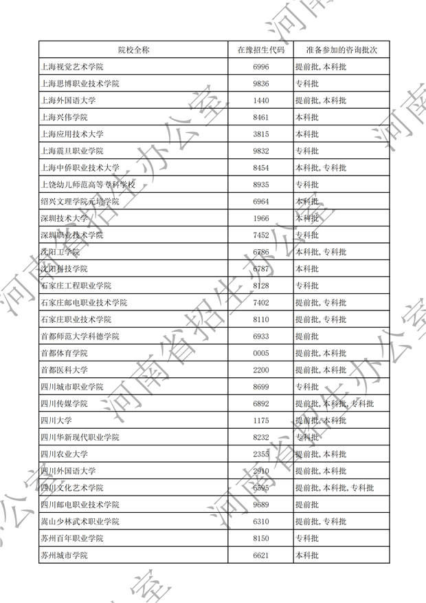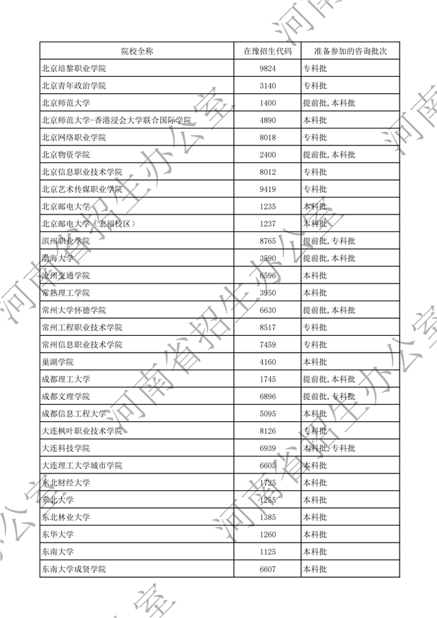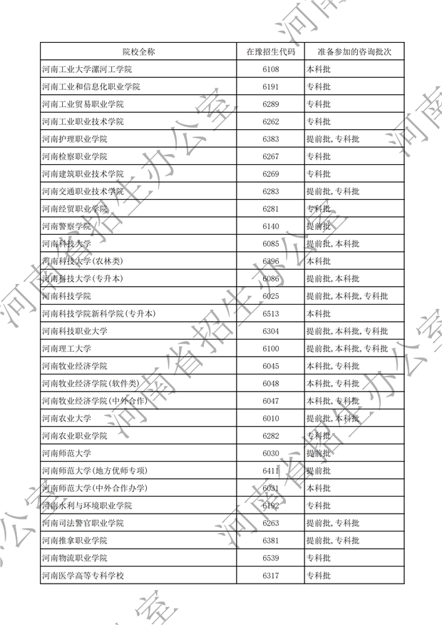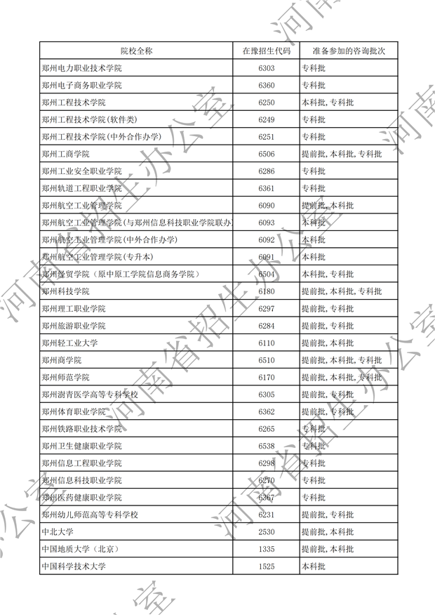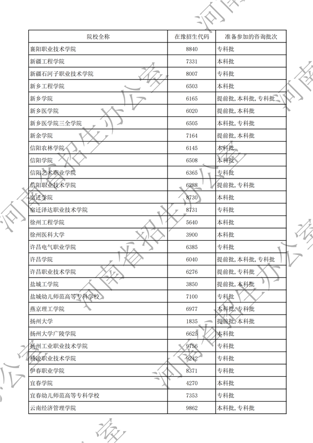 附:参加“2021年河南省普通高招网上咨询活动”的在豫招生院校名单