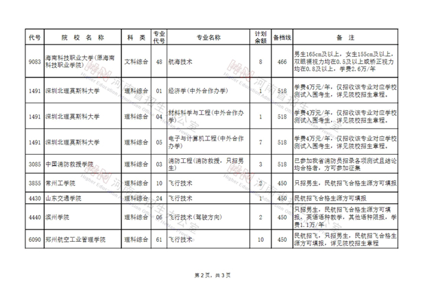 (四)提前录取的其他类本科:郑州航空工业管理学院、烟台南山学院、山东交通学院、滨州学院、常州工学院飞行技术专业要求考生民航一级体检合格、政审通过,高考成绩450分以上,英语单科成绩90分以上。