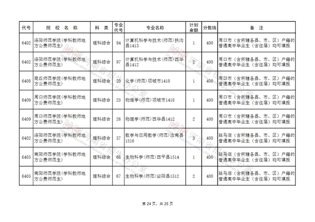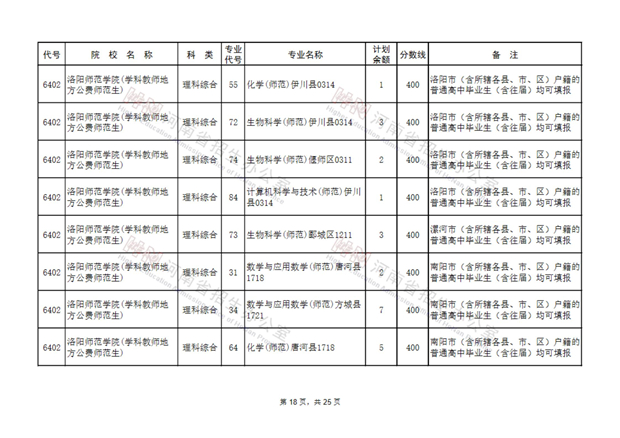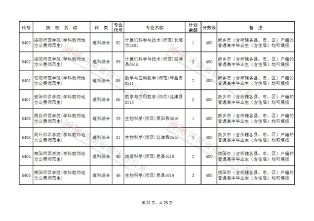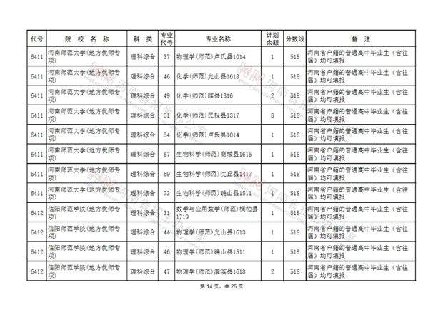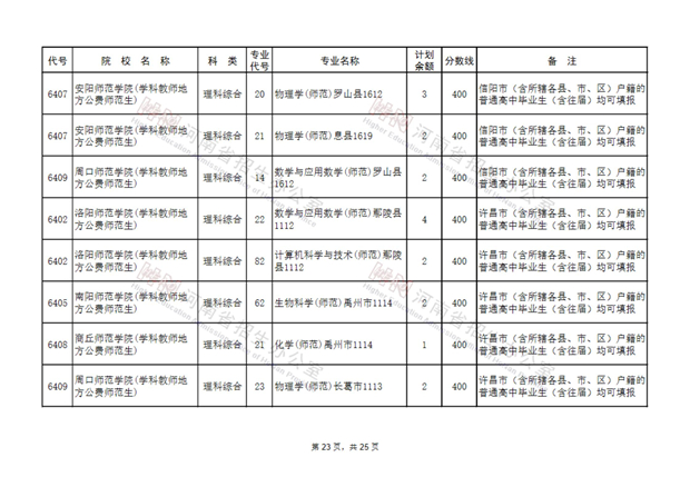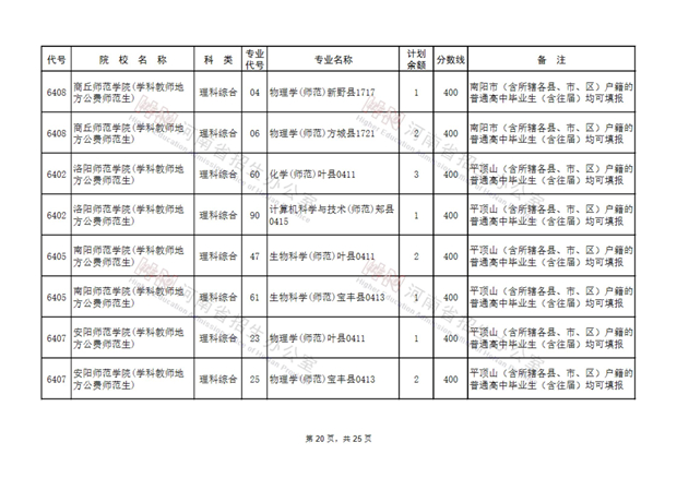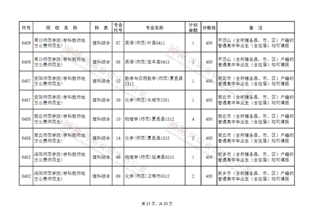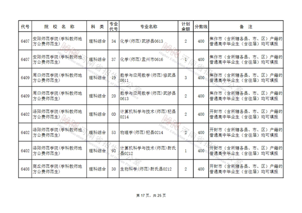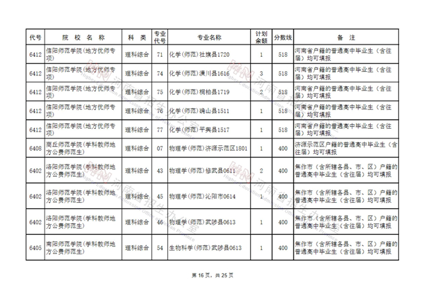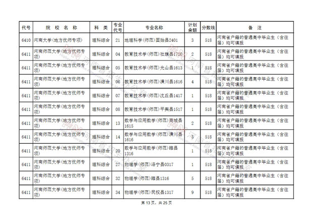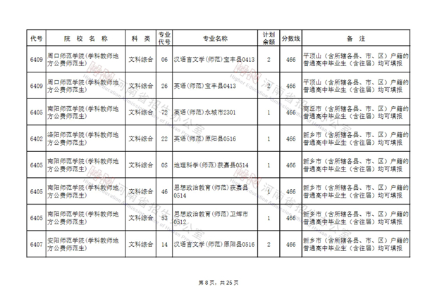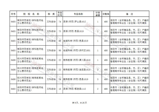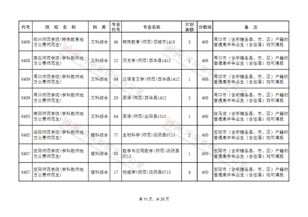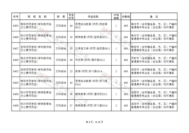 (三)“地方优师专项计划” 公费师范生:具有河南省户籍的普通高中毕业生(含往届),高考成绩达到规定要求,目前未被任何院校录取的考生,可填报相应的院校志愿。