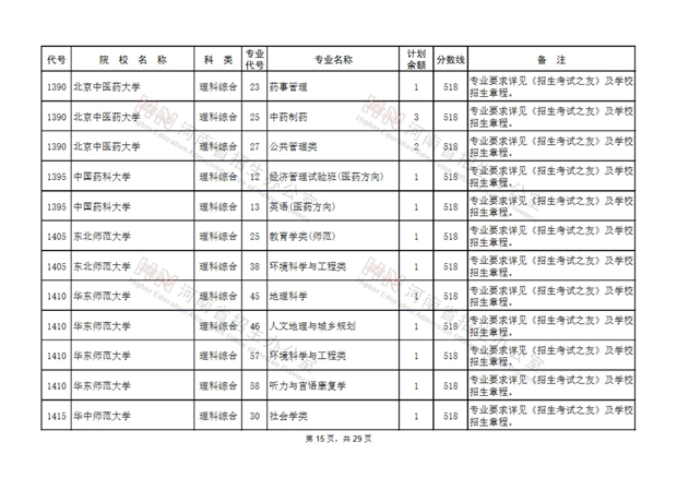 本科提前批、国家专项计划批、对口招生本科和专升本院校按程序投档录取后,部分院校招生计划有余额,决定面向符合条件的考生征集志愿。现将有关事宜通知如下: