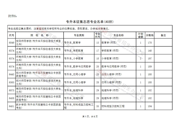 关于本科提前批、国家专项计划批、对口招生本科和专升本部分院校征集志愿的通知