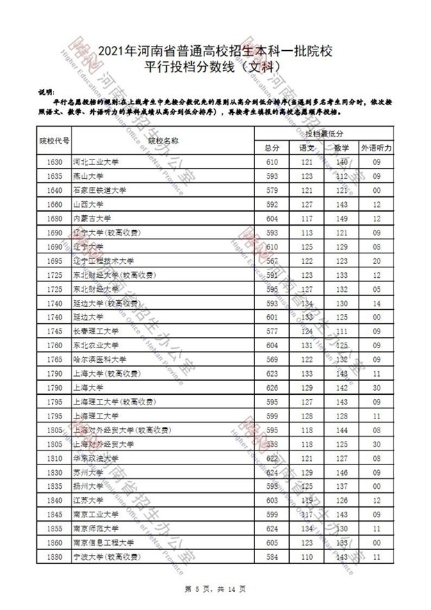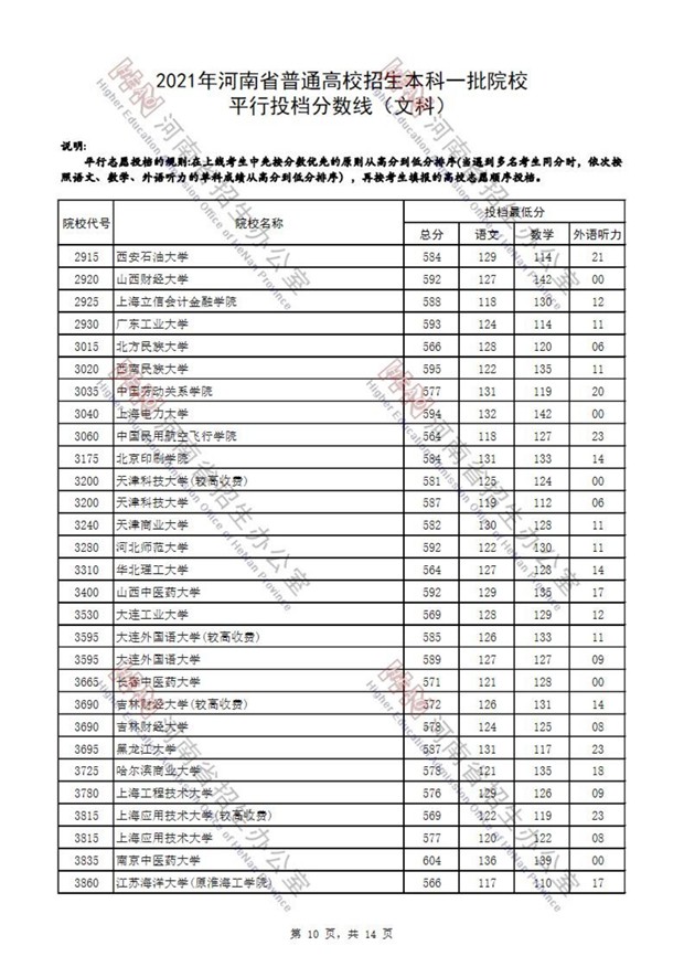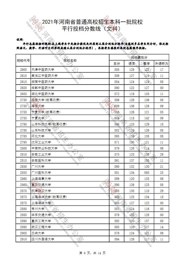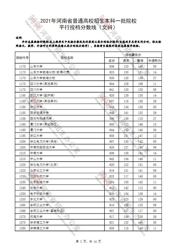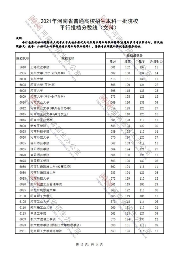 2021年河南省普通高招本科一批院校平行投档分数线(文科).pdf