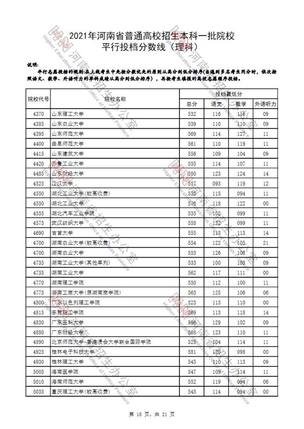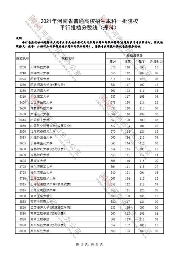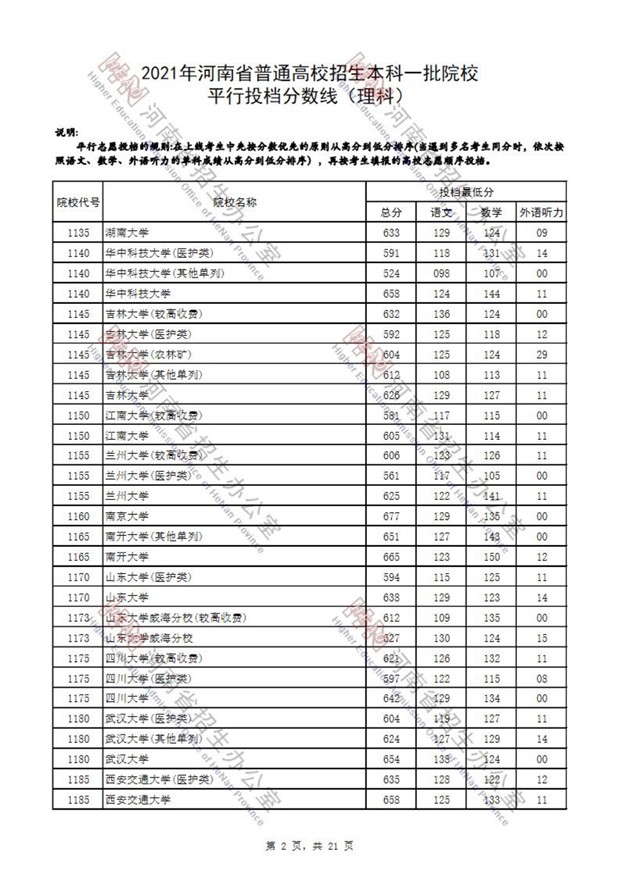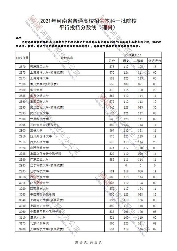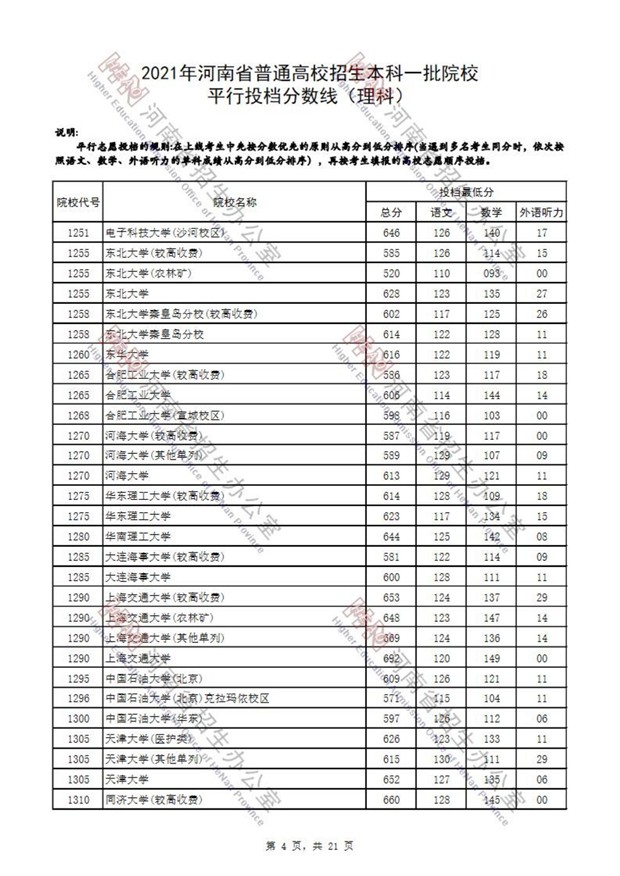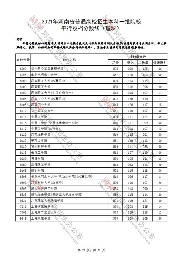2021年河南省普通高招本科一批院校平行投档分数线(理科).pdf