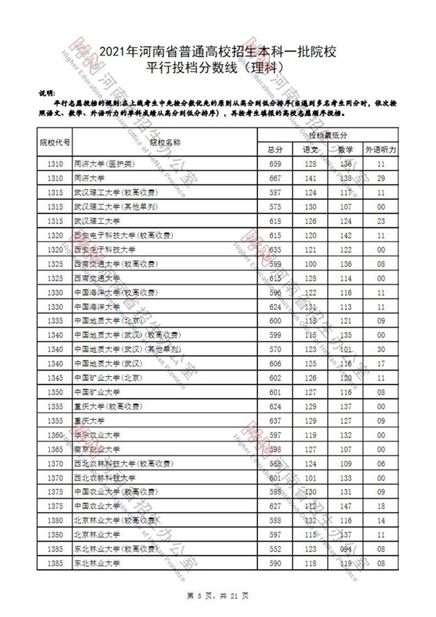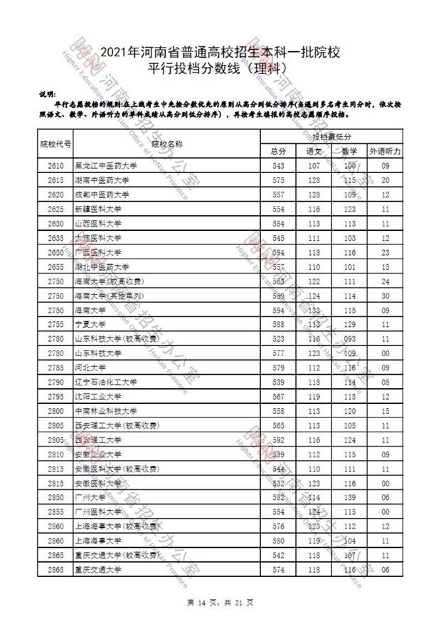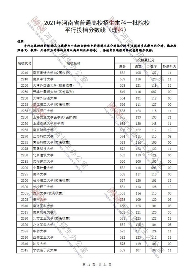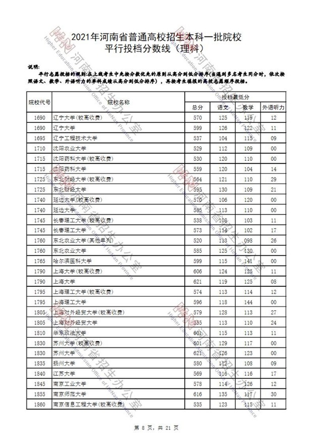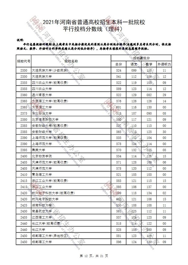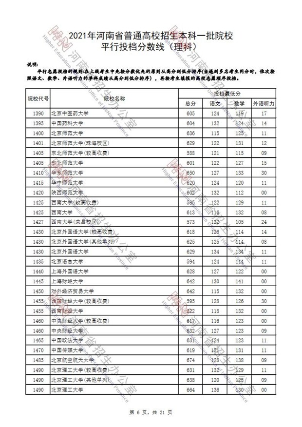 2021年河南省普通高招本科一批院校平行投档分数线(理科).pdf