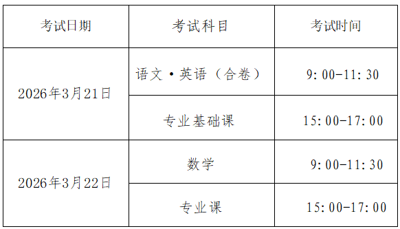 考点设在省辖市招生考试机构所在地,各地招生考试机构统一打印准考证后交由考生所在学校发给考生,考生凭本人身份证和专业准考证按规定时间参加考试。考试成绩于2026年1月12日公布。