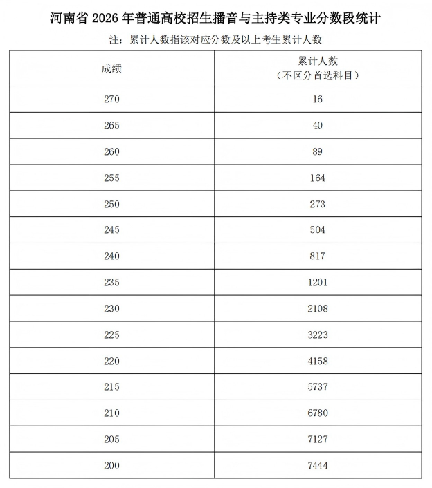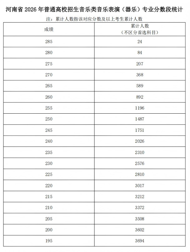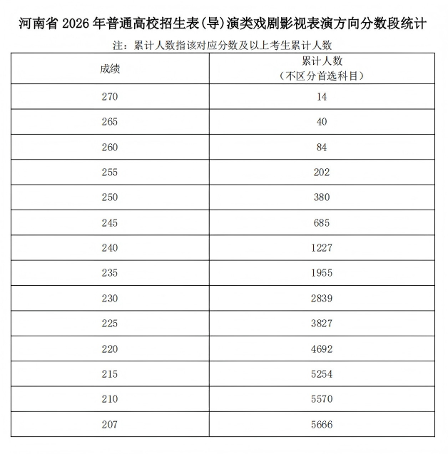 河南省2026年普通高校招生艺术类专业省级统考舞蹈类、播音与主持类、音乐类和表 (导)演类戏剧影视表演及戏剧影视导演方向专业分数段