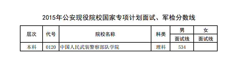 2015年河南省普通高招公安及公安现役院校面试分数线