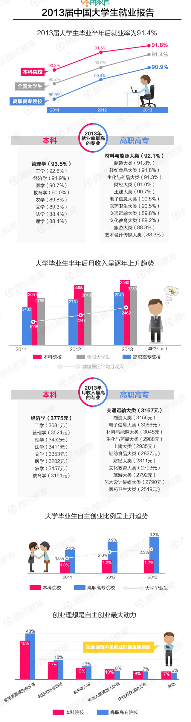 2013届大学生本专科就业率较高的专业(图)